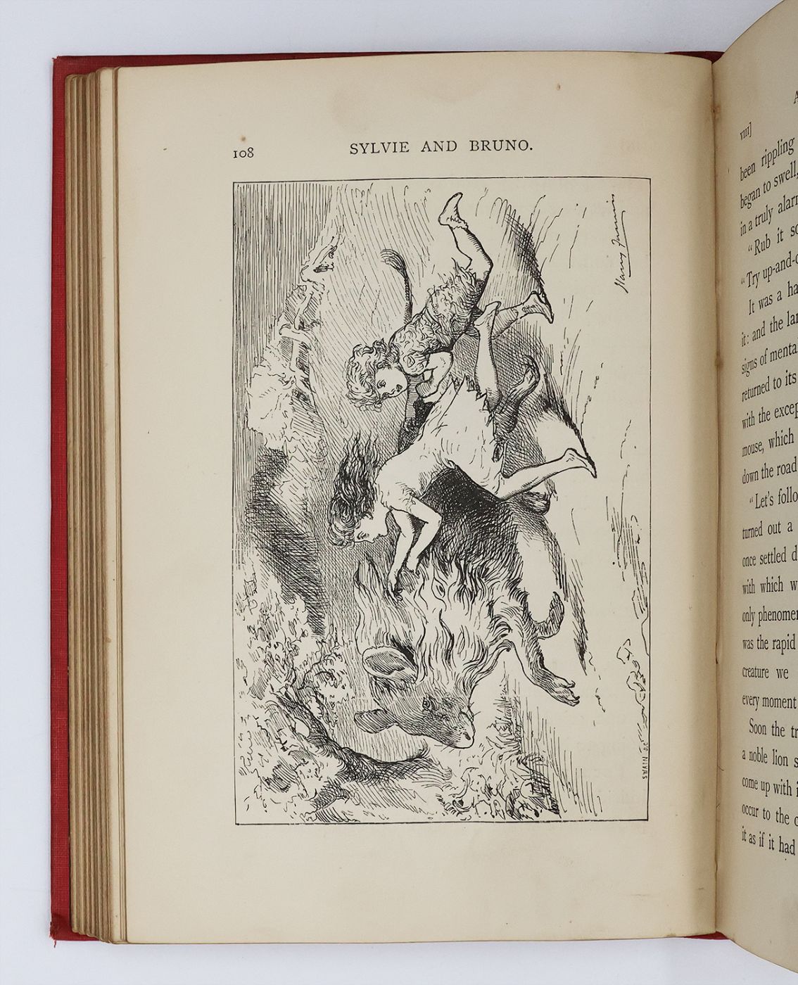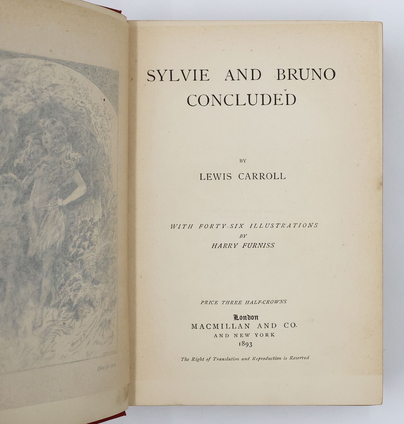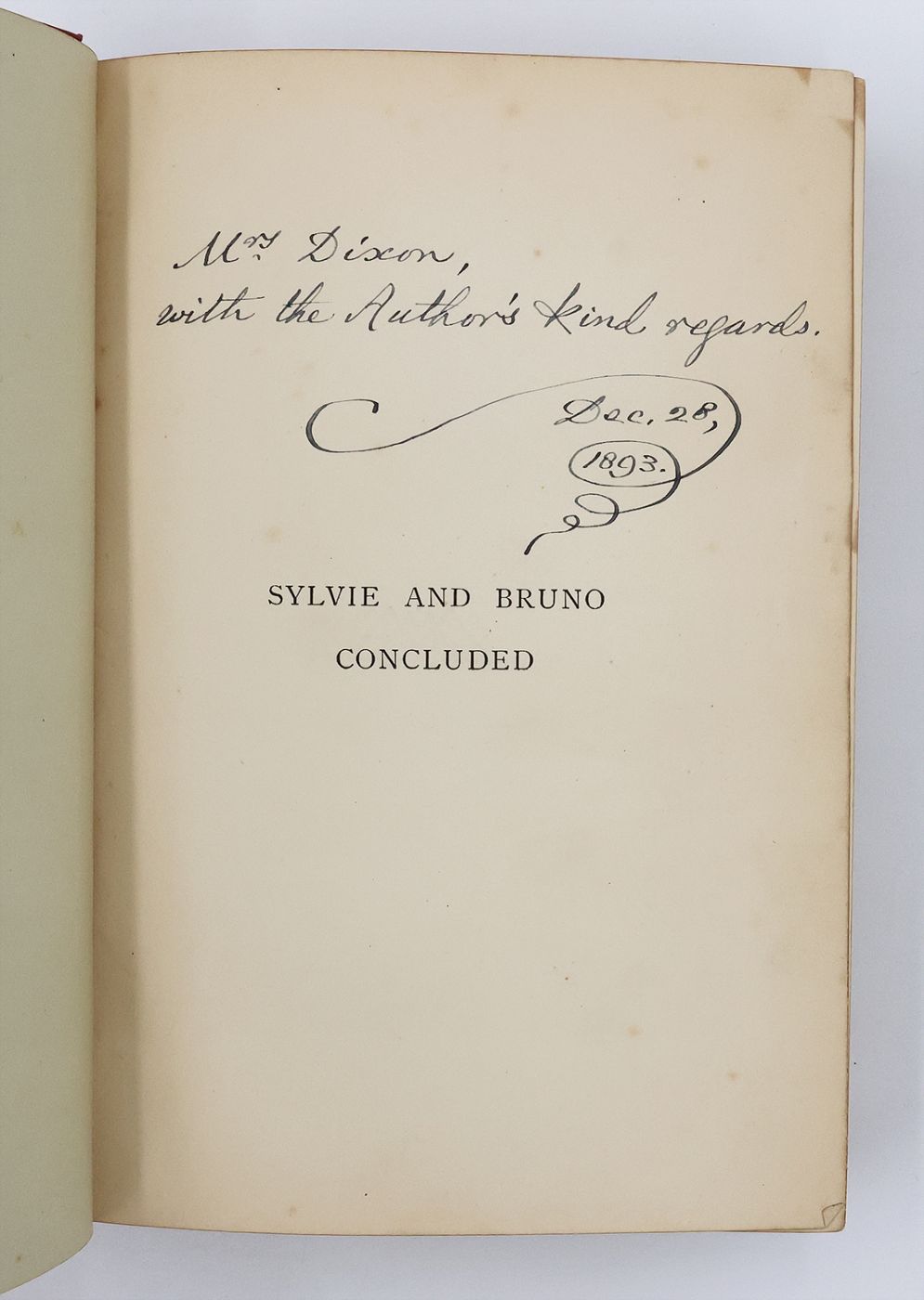 First edition, first printing. Two volumes. Inscribed presentation copies, signed by the author. Publisher's original red cloth, triple ruled in gilt and with circular illustrations in gilt to the upper and lower boards, titles in gilt to the spines. All edges gilt. Each volume with a tissue guarded frontispiece and 45 further illustrations throughout the text by Harry Furniss. Both volumes are in very good or better condition, the bindings firm with a little bumping at the extremities, the cloth with a few minor marks, the spine of Sylvie and Bruno somewhat faded, that of Sylvie and Bruno Concluded a little rippled. The contents, with a little spotting to the prelims, and occasionally to the margins throughout, are otherwise clean and bright. An attractive set.