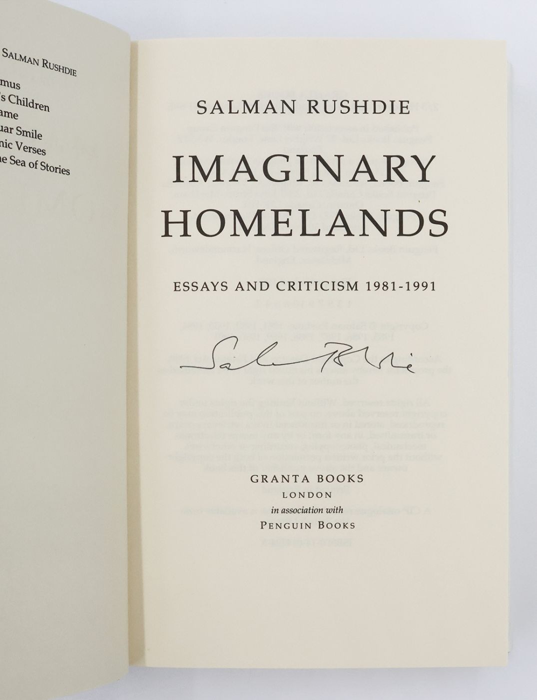 Signed by Salman Rushdie in black ink on the title page.