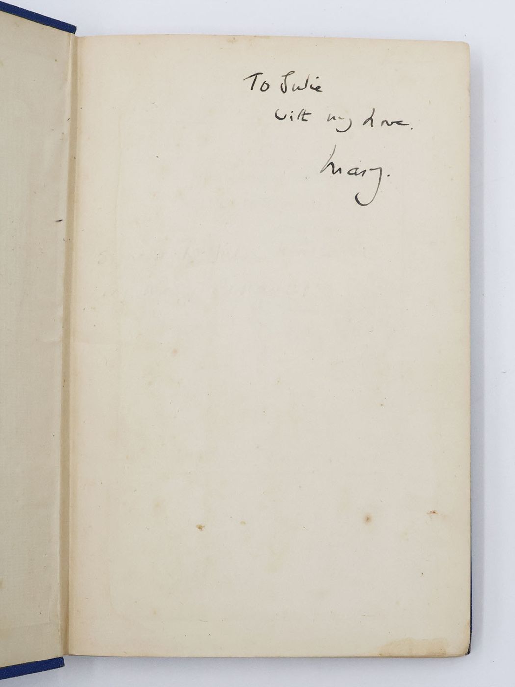 First edition, first printing. Signed by the author. Inscribed presentation copy from Mary Renault to her life partner Julie Mullard. Publisher's original blue cloth with titles in silver to the spine. Lacking the dustwrapper. A very good copy, the binding square and firm with some bumping and fraying to the spine tips and corners, the titles somewhat rubbed. The contents with a few isolated foxing spots, mainly to the endpapers, are otherwise clean throughout.