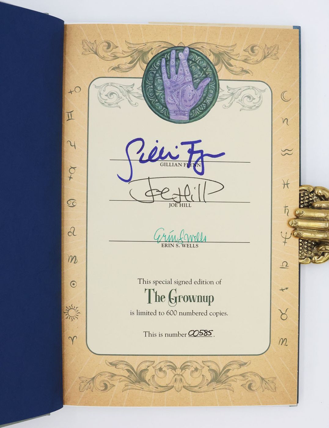 Issued in a limited edition of 600 copies, this example is numbered 585 and is signed by Gillian Flyn, Erin S. Wells and Joe Hill on the limitation page. A psychological thriller novella with ghost story elements about a former sex worker posing as a palm reader. First published in 2014 in the 'Rogues' anthology, edited by George R. R. Martin.