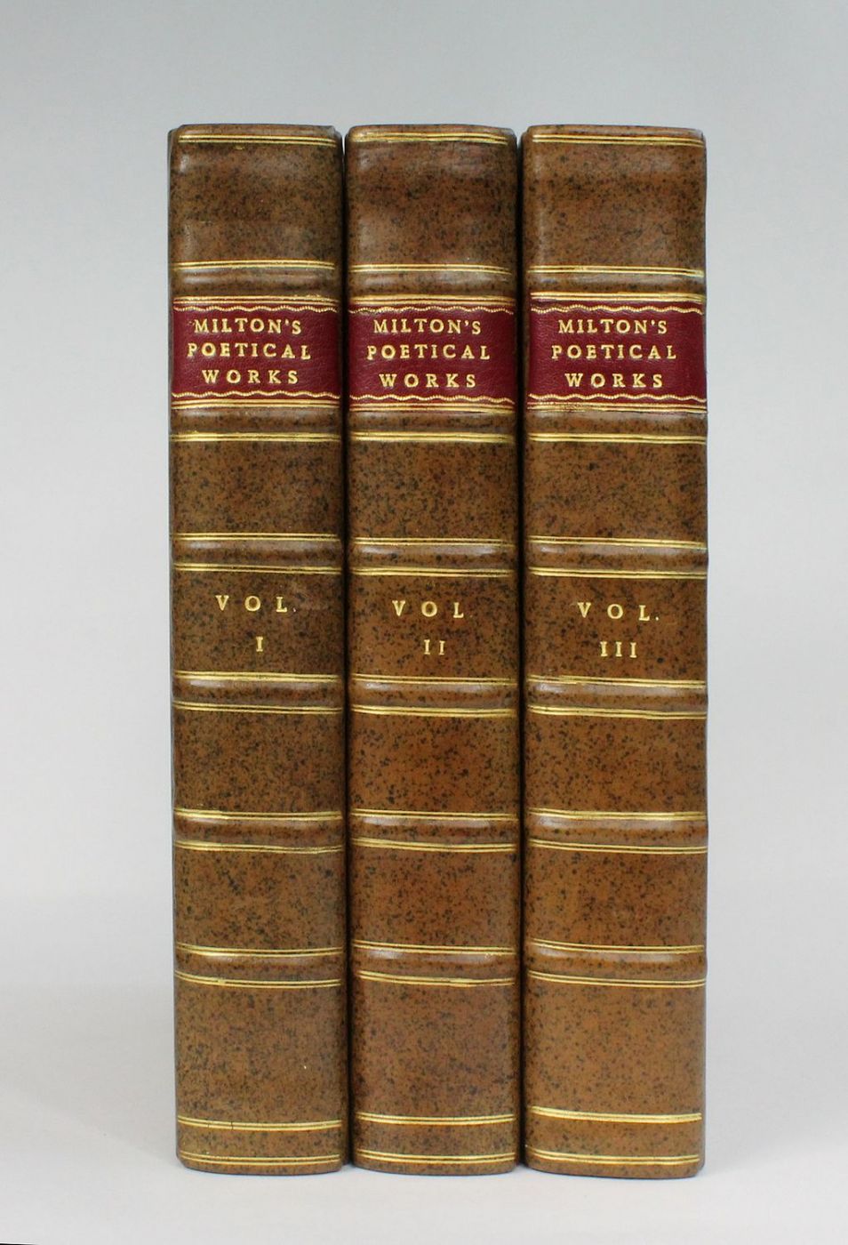 New edition. Three volumes. Quarto. Finely bound in recent full speckled brown calf. Spines with raised bands, the compartments double ruled in gilt. Red labels, titled in gilt. Double ruled blind border on boards. Volume 1. lxxix, xxii,491pp; Volume 2. 460pp, 116pp indexes; Volume 3. 690pp, iipp index. Illustrated with 20 full page copper engraved plates, including 3 portraits as the frontispiece for each volume and 17 fine illustrations by Francis Hayman. Neat contemporary previous owners' names to the top of the title pages and reverse of frontispieces. Some minor foxing to the margins of a few pages, and darker offsetting to 2 leaves where a previous owner had inserted a fern leaf. Illustrations with some offsetting to the opposite page. A very good set of this beautifully illustrated and printed edition.