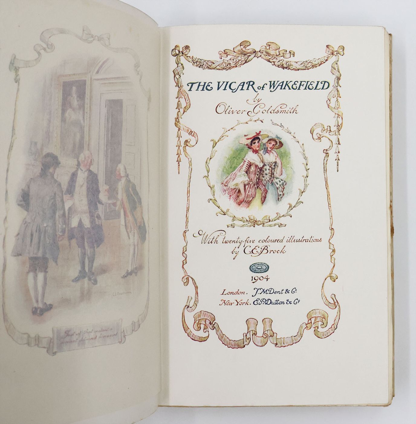 First edition with these illustrations. Deluxe issue. Publisher's original vellum, elaborately decorated and with titles in gilt to the upper board and spine. Top edge gilt. With a tissue guarded frontispiece, illustrated title page and a further 22 full page colour plates after watercolours by C. E. Brock. A near fine copy, the binding firm with a little bowing at the board ends, the vellum and gilt bright and fresh. The contents, with a neat ownership inscription (dated 1914) to the blank front free endpaper, and a little spotting to the prelims and text block edge, are otherwise clean throughout.