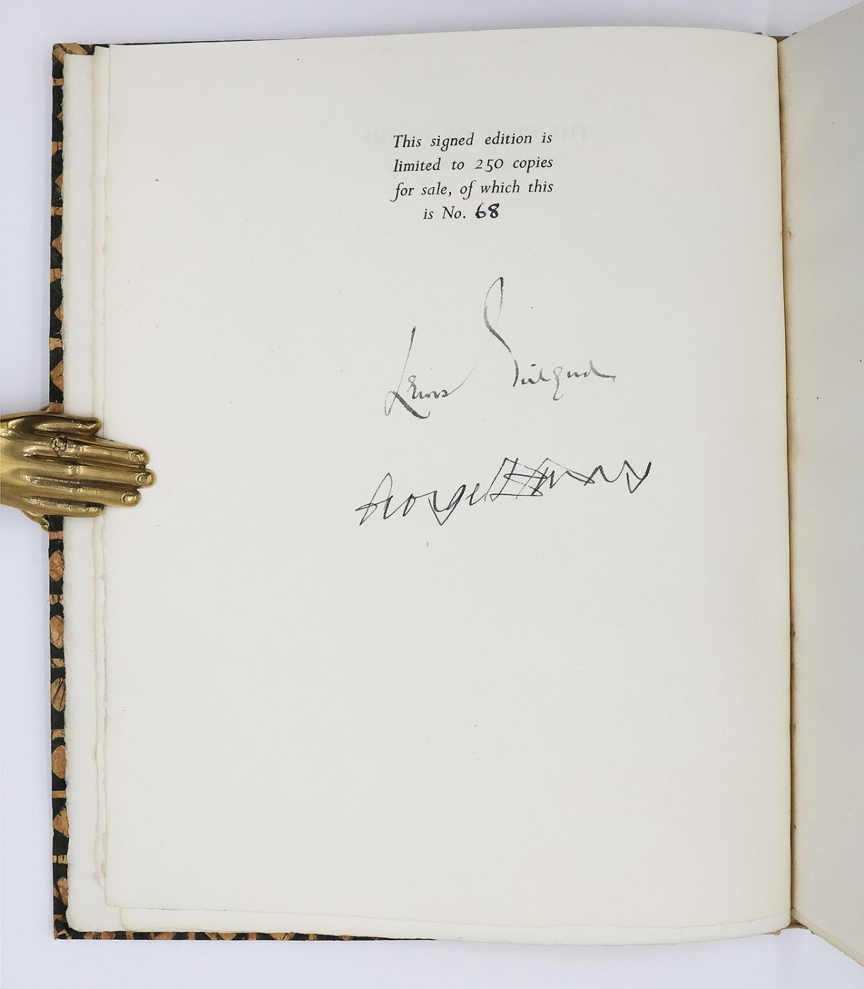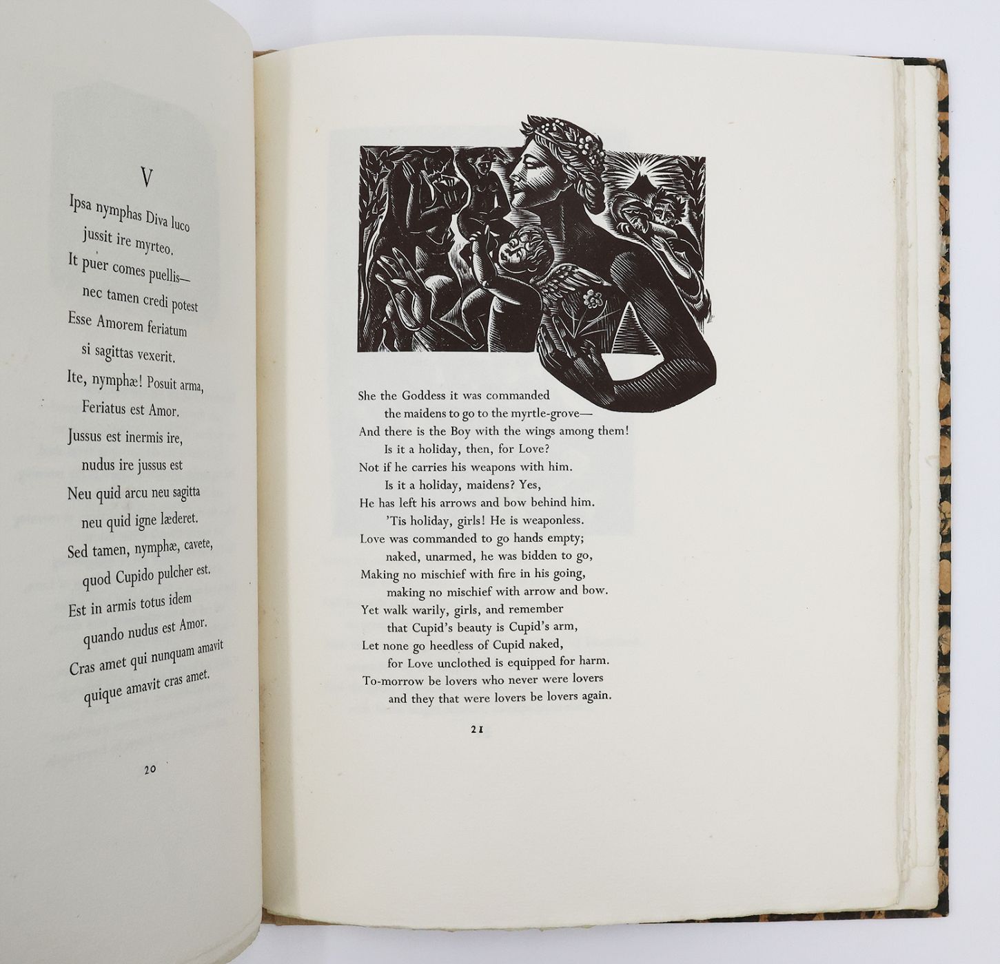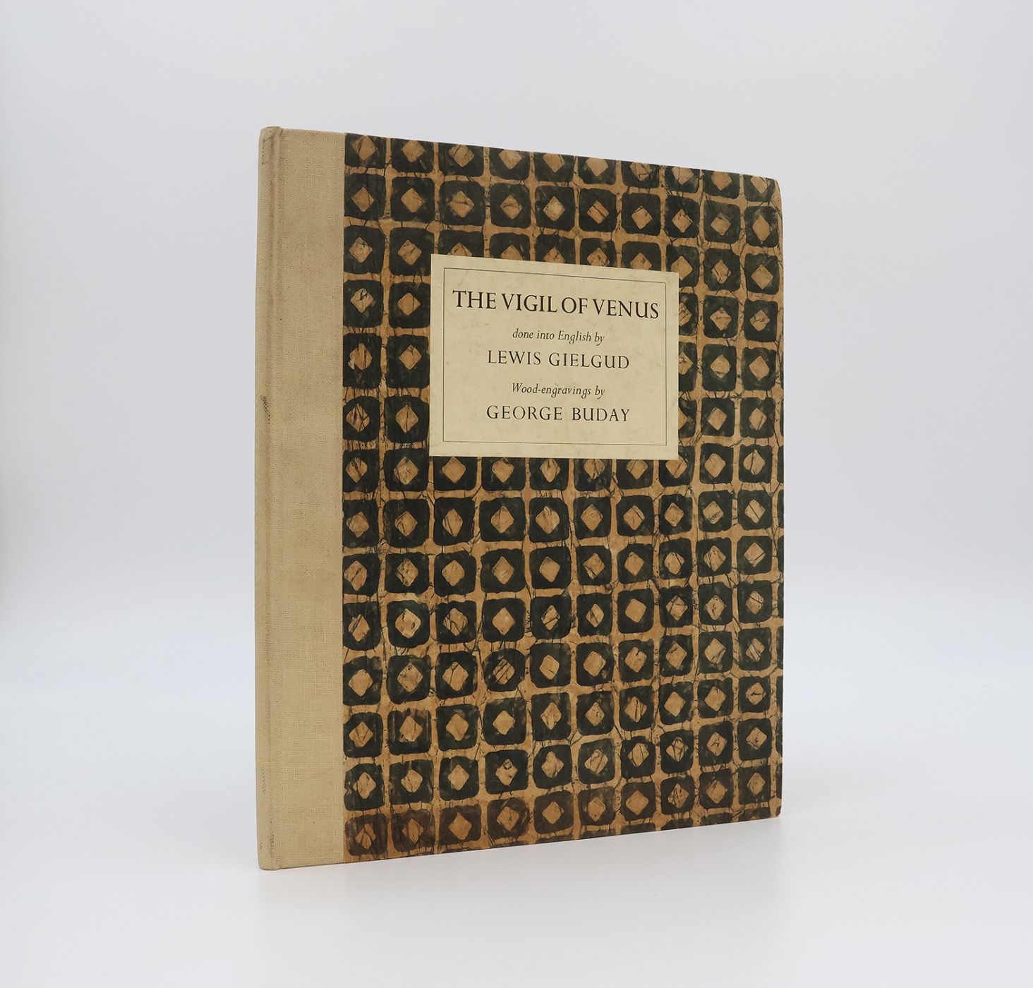 Issued in a limited edition of 250 copies, this example is numbered 68 and signed by the translator Lewis Gielgud and artist George Bunday in black ink on the limitation page. An attractive English translation of the Pervigilium Veneris.