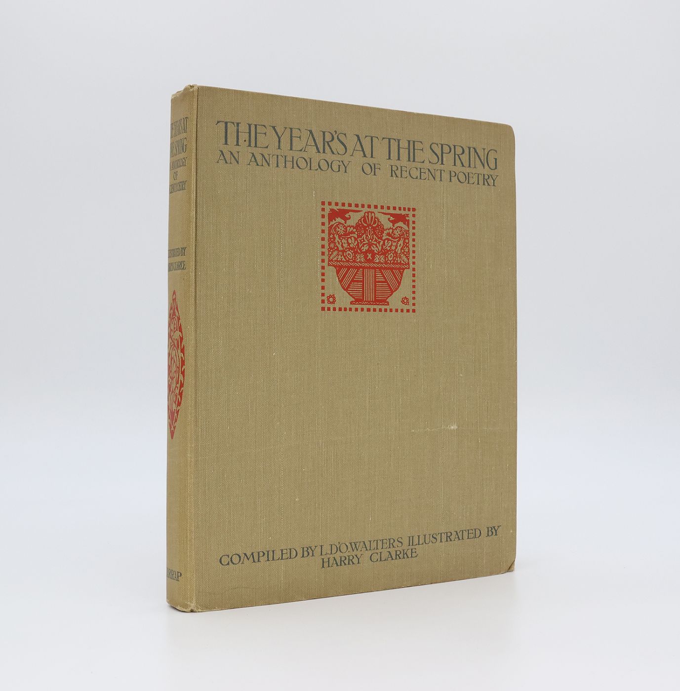 First edition. Original beige cloth with titles in blue and decorations in red to the upper board and spine, in dustwrapper. Illustrated with 24 fantastic full page plates by Harry Clarke of which 12 are in colour and 12 are black and white, with further illustrations in black throughout the text. A better than very good copy, the binding square and firm, the spine tips and corners with mild rubbing and bumping. The contents, with some offsetting to the endpapers, very light spotting to the prelims and closed text block edge and faint marks to the plate facing page 62, are otherwise clean throughout and without inscriptions or stamps. There is a short closed tear each to the blank margins of the plates facing pages 106 and 109, not effecting the illustration. Complete with the near very good, rubbed and nicked original dustwrapper that is a little dusty and toned with a few short closed tears at the edges and some chipping to middle and tips of the spine.