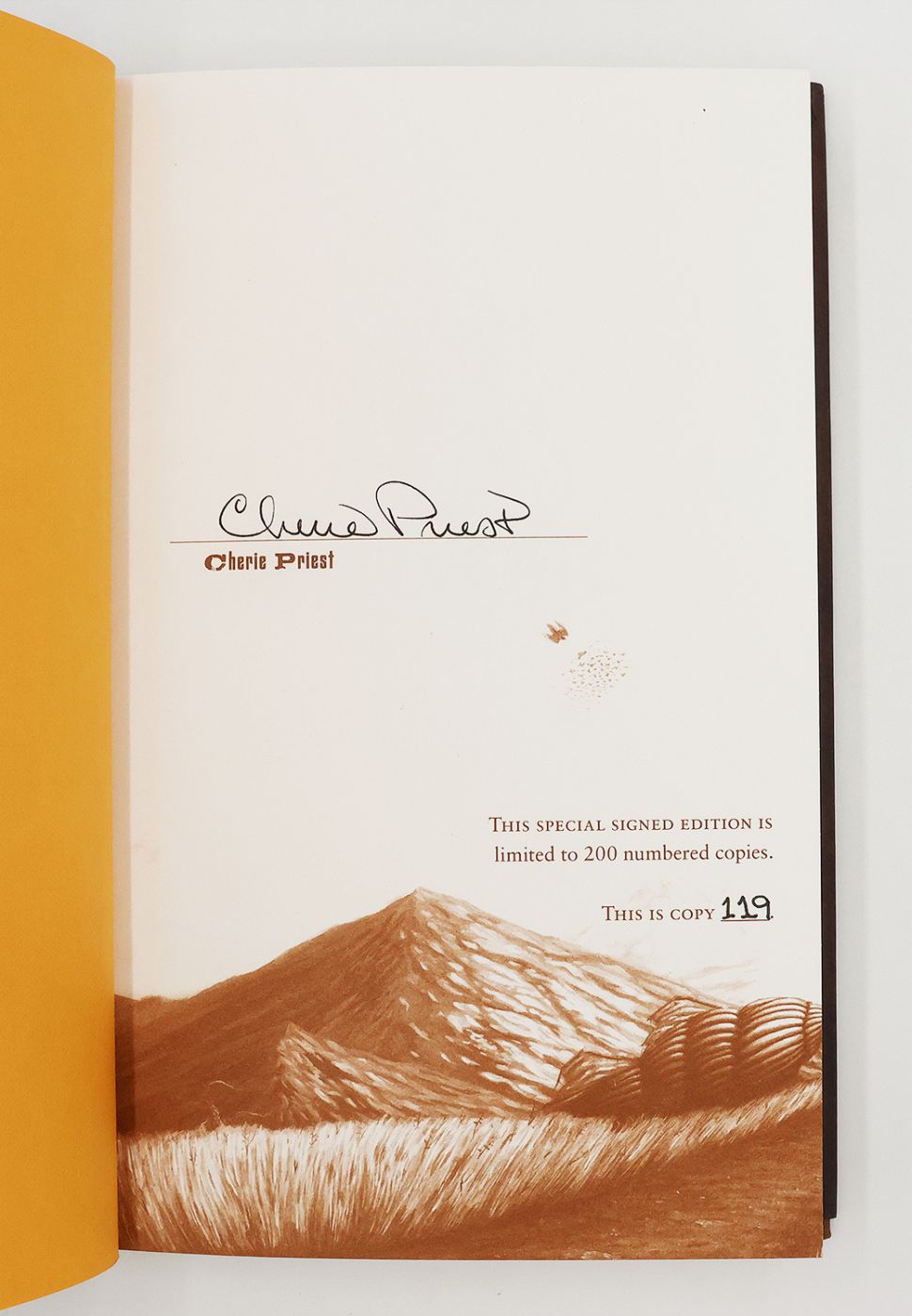 Issued in an edition of 200 copies, from which this example is numbered 119, and signed by author Cherie Priest in black ink on the limitation page. The second novel in Priest's steampunk zombie 'Clockwork Century Universe' series with accompanying chapbook of bonus material. A sequel to the Hugo and Nebula Award-winning novel 'Boneshaker' (2009).