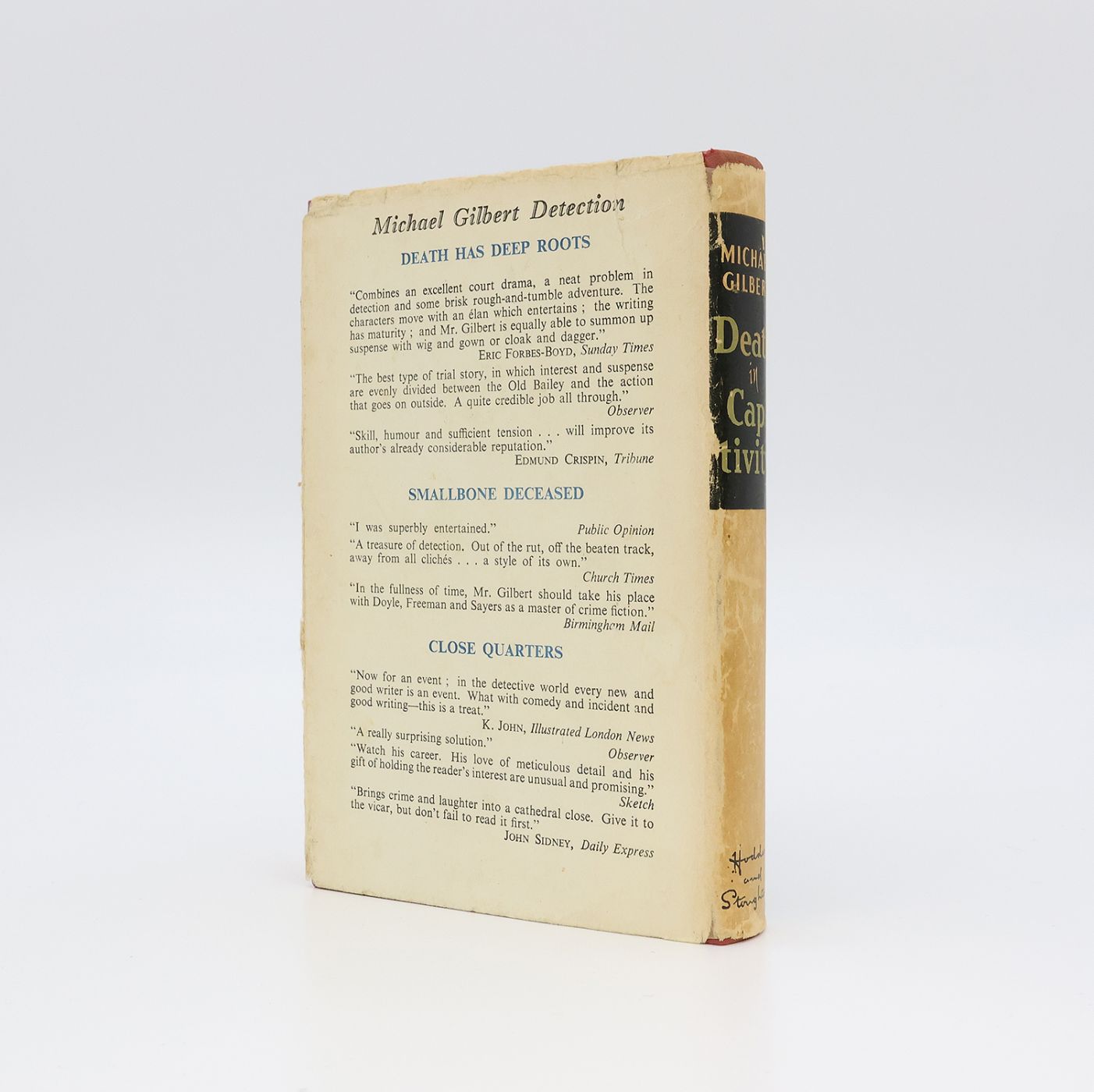 The author's sixth novel, a stand alone mystery and the basis for the 1959 British Don Chaffey directed film 'Danger Within' starring Richard Todd, Bernard Lee, Richard Attenborough and Michael Wilding. H. R. F. Keating, in his obituary for Michael Gilbert (in The Guardian), wrote that "Gilbert's time as a PoW prompted Death In Captivity (1952), surely the only whodunnit set in a prisoner-of-war camp". (Hubin).