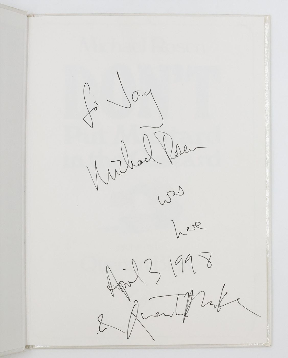 Inscribed by the author in black ink on the front endpaper "For Jay / Michael Rosen / was / here / April 3 1998" underneath which the artist has added "& Quentin Blake". Uncommon in double signed state. A wonderfully illustrated collection of verse by the Children's Laureate combination Michael Rosen and Quentin Blake, first published in 1985..