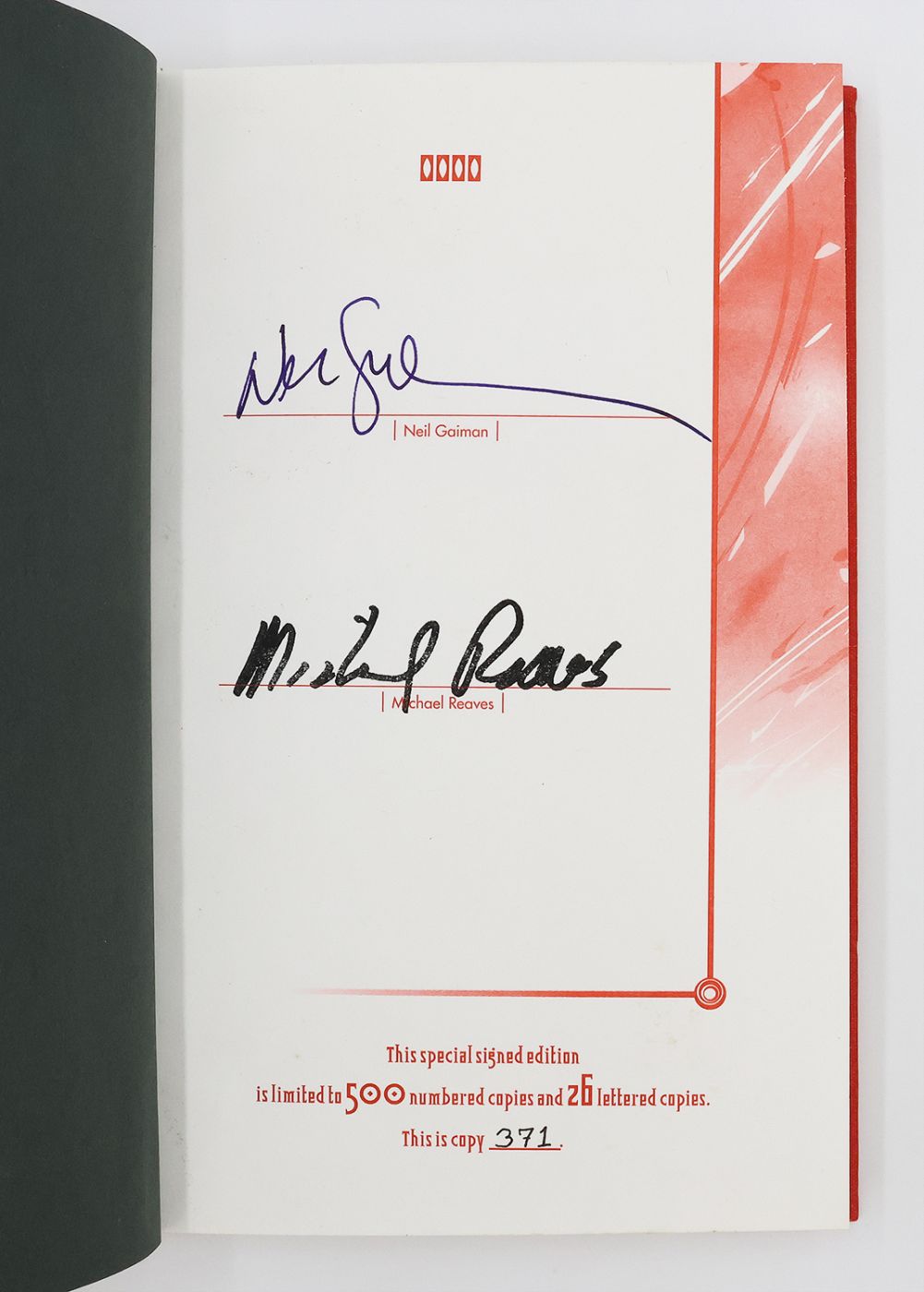 Issued in an edition of 500 copies, from which this example is numbered 371, and signed by the authors Neil Gaiman and Michael Reaves in dark blue and black ink, respectively, on the limitation page. A fantasy and science fiction young adult novel of interdimensional travel, following a high school student and his parallel-universe alternate selves as they attempt to find a cosmic balance between science and magic. The novel was first published in 2007 by EOS, and is the first in a trilogy, preceding 'The Silver Dream' (2013) and 'Eternity's Wheel' (2015). A second Subterranean Press edition released in 2013 was illustrated by Jon Foster and again signed by the authors.
