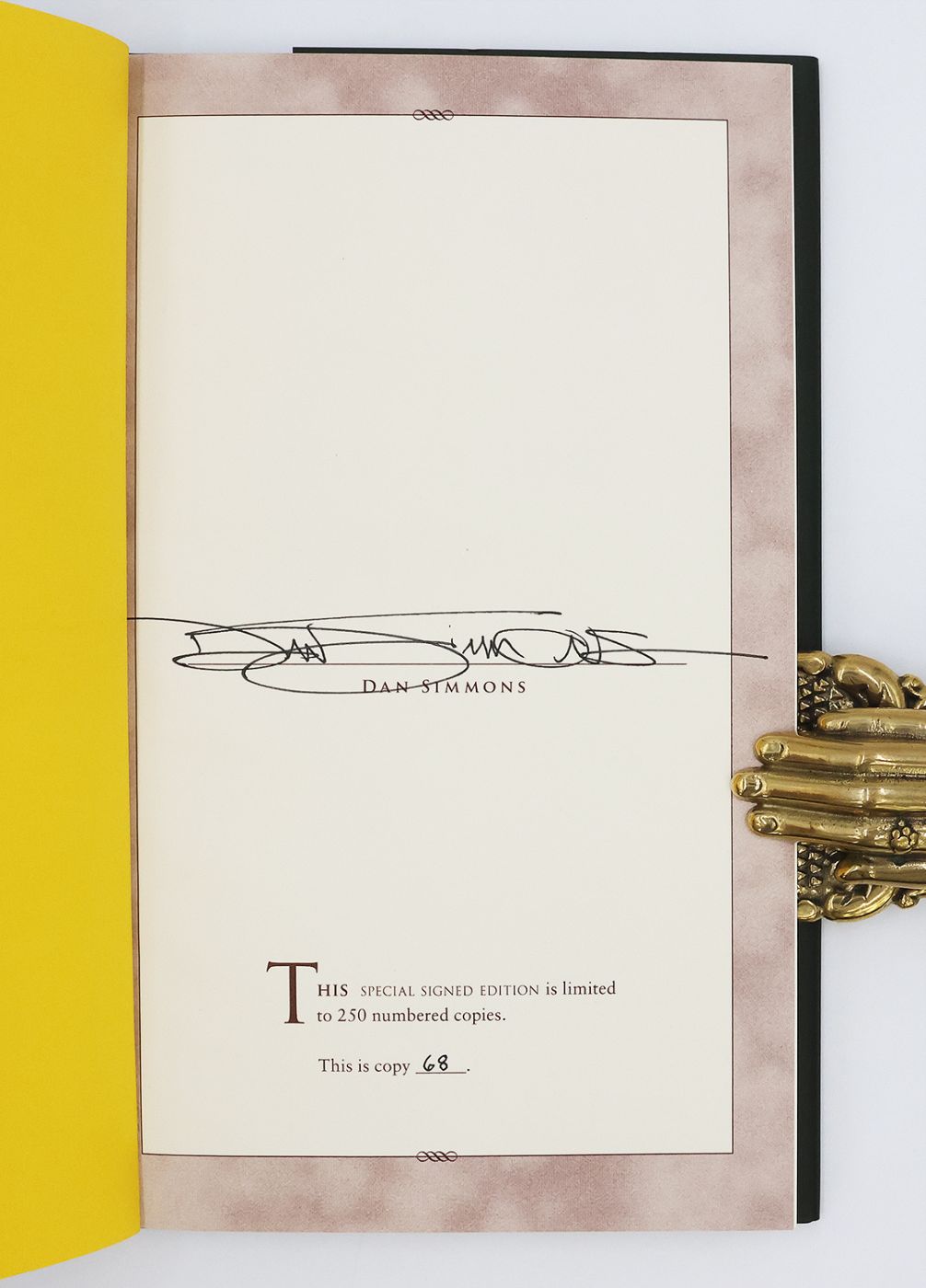 Issued in an edition of 250 copies, from which this edition is numbered 68, and signed by Dan Simmons in black ink on the limitation page. An attractive example of World Horror Grandmaster Dan Simmons' novella, which first appeared in the 2007 science fiction anthology 'The New Space Opera', edited by Gardner Dozois and Jonathan Strahan.