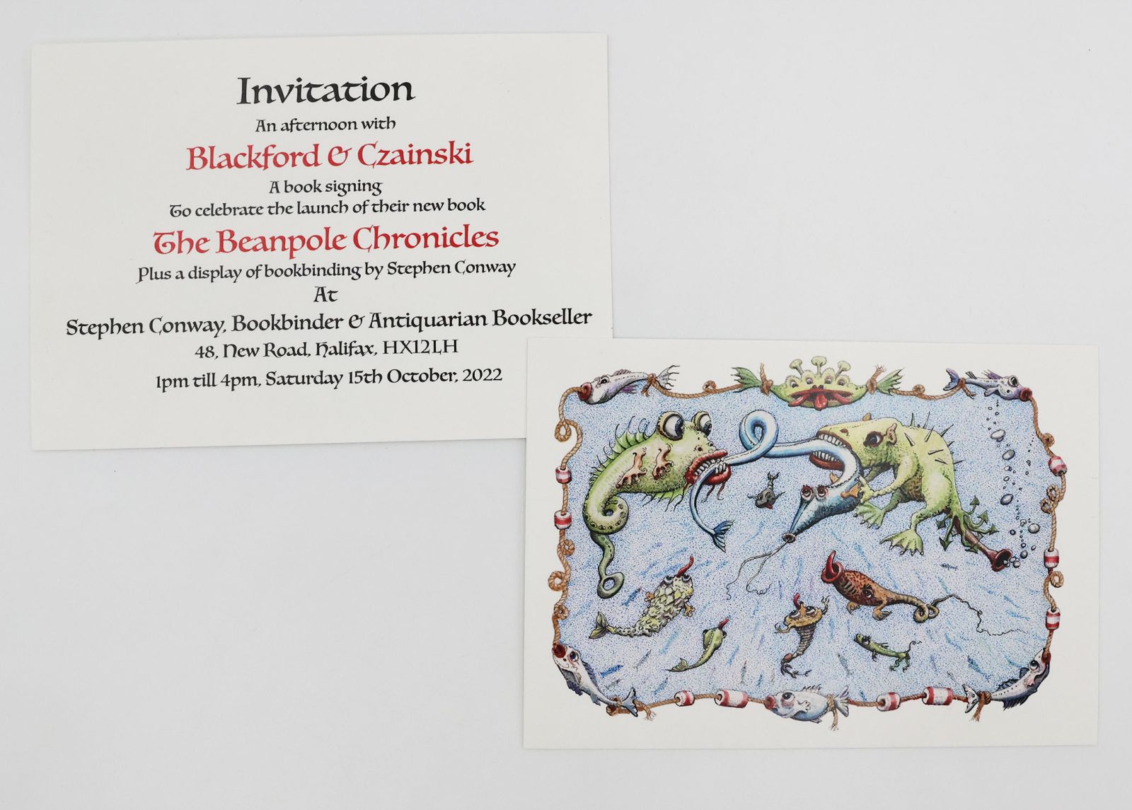 First edition, first printing. Signed by the author and the illustrator. Publisher's original tan and brown paper boards illustrated by Paul Czainski, with titles in red and black to the upper board. Includes two illustrated card invitations to private book signing and launch event for 'The Beanpole Chronicles' loosely laid in. Illustrated throughout with 34 colour plates by Paul Czainski. A fine copy, the binding square and firm, the contents are clean throughout. Priced (£49.00 on the lower board).