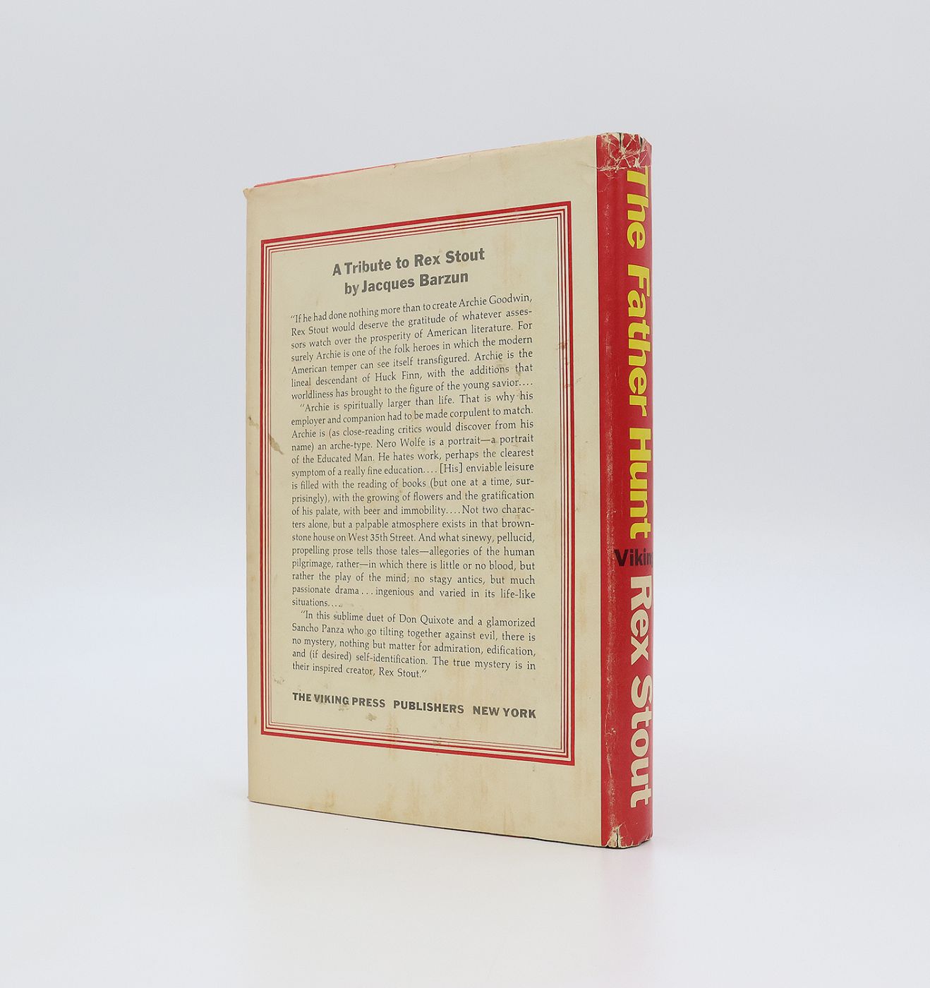 First edition, first printing. Signed by the author. Publisher's original quarter black cloth and red paper-covered boards, with white titles to the spine, in the Mel Williamson designed dustwrapper. Top edge dark blue. With an original typed letter signed by Rex Stout on a single leaf of the author's personal stationery, complete with the original paper envelope, loosely laid in. An excellent near fine copy, the binding square and firm, the cloth bright and fresh, with just a little rubbing to the spine tips. The contents, with light spotting to the closed text block, are otherwise clean throughout and without previous owner's inscriptions or stamps. Complete with the very good, lightly rubbed, nicked and creased dustwrapper, which has acouple of small short closed tears with associated creasing to the head of the spine and lower spine folds, and a tiny chip to the bottom edge of the front panel. There is a light cup ring to the underside of the front panel (just visible to the printed side). Not price-clipped ($4.50 to the upper front flap).