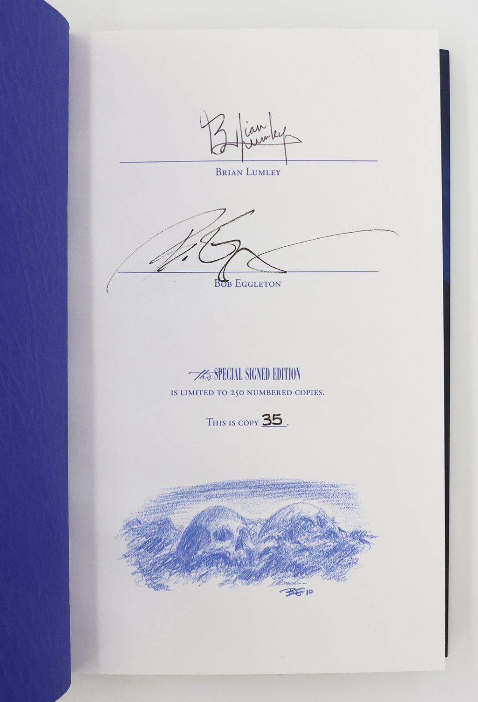 Issued in an edition of 250 copies, from which this example is numbered 35, and signed by the author Brian Lumley and illustrator Bob Eggleton in blue and black ink, respectively, on the limitation page. An attractive example of the last novel by award-winning English horror author Brian Lumley (1937-2024).
