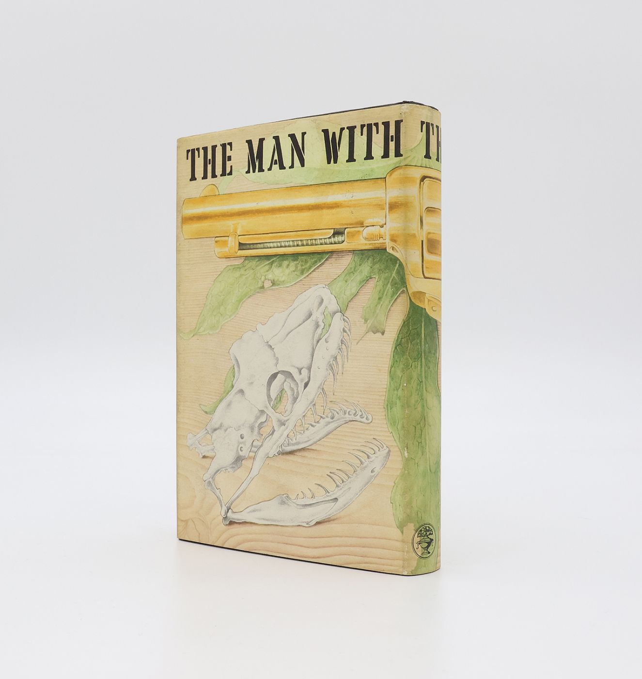 The Man With the Golden Gun was the last novel to be written by Ian Fleming, who died before making his final revisions. Posthumous publication was on 1st April 1965. "The ambitious cover design gave Chopping much trouble, as he could not show the whole of the gun on the front panel for fear of it being too small. He therefore had to extend it across to the rear panel, thus becoming the wraparound cover art. Without Fleming's instructions Chopping had more of a free rein in the dust-jacket design, which could now include some of his trademark flies. The idea of the snake's skull also came from Chopping, who was a lover of reptiles and amphibians and picked up on the symbolic appearance of a rainbow boa in the final showdown" - Jon Gilbert, Ian Fleming: The Bibliography. Provenance: acquired from Richard Chopping by Peter L. Stern (c.1987); private US collection. [Gilbert A13a (1.3 First impression, first issue, second state, binding B)], preceded only by the issue of 940 copies with the gilt stamped gun on the upper board.