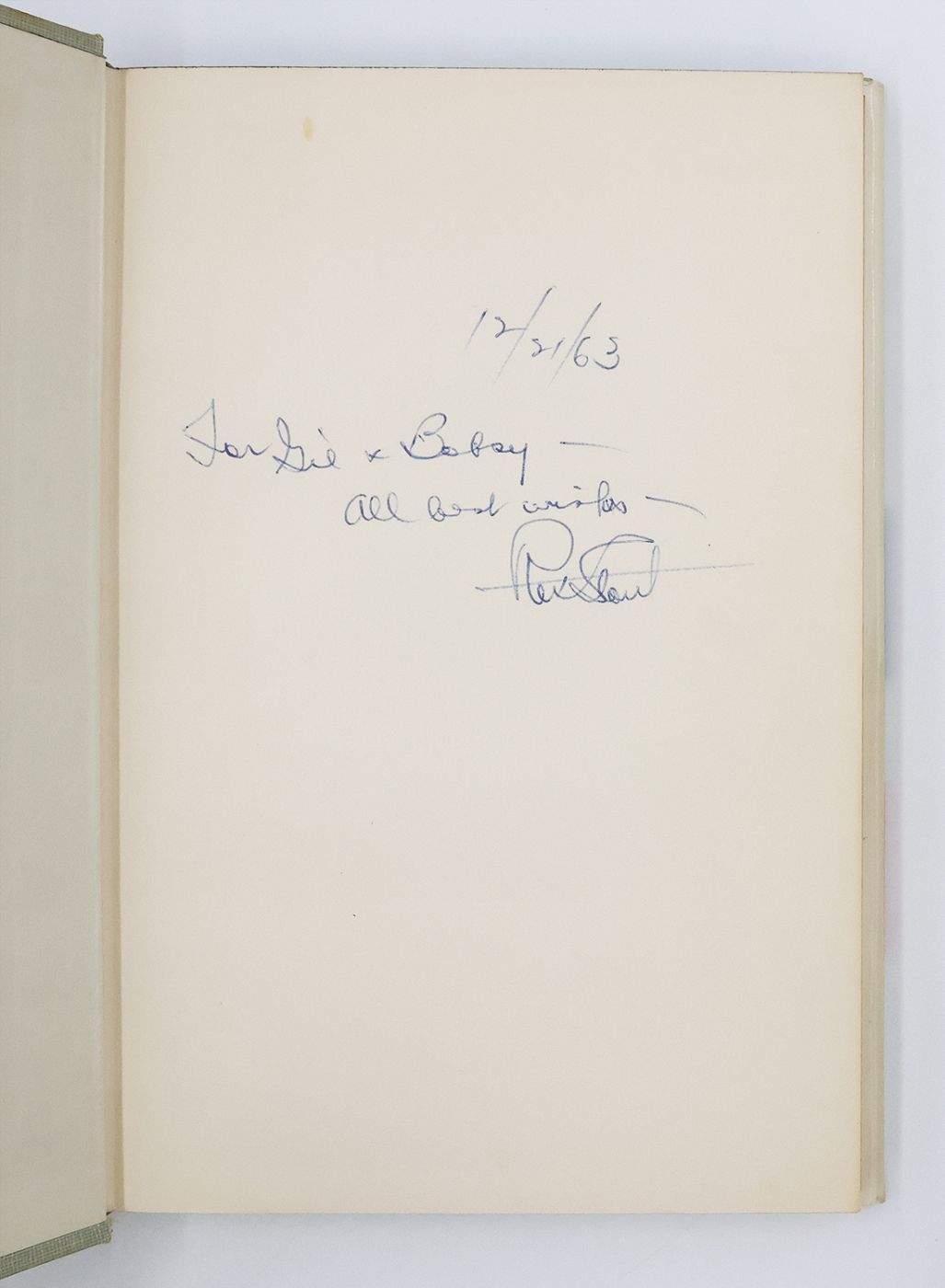 First edition, first printing. Signed by the author. Inscribed presentation copy. Publisher's original grey cloth with safety pin illustration in blue and red to the upper board, and titles blocked in blue and red to the spine, in the Bill English designed dustwrapper. Top edge blue. A lovely near fine copy, the binding square and firm, the cloth bright, with just a little spotting to the extreme top edge and a touch of rubbing to the spine tips and extremities. The contents are clean throughout, and without previous owner's inscriptions or stamps. Complete with the very lightly rubbed and nicked dustwrapper, which has a couple of short closed tears, a touch of spotting to the underside, and is otherwise without fading or loss. Not price-clipped ($3.50 to the upper front flap).