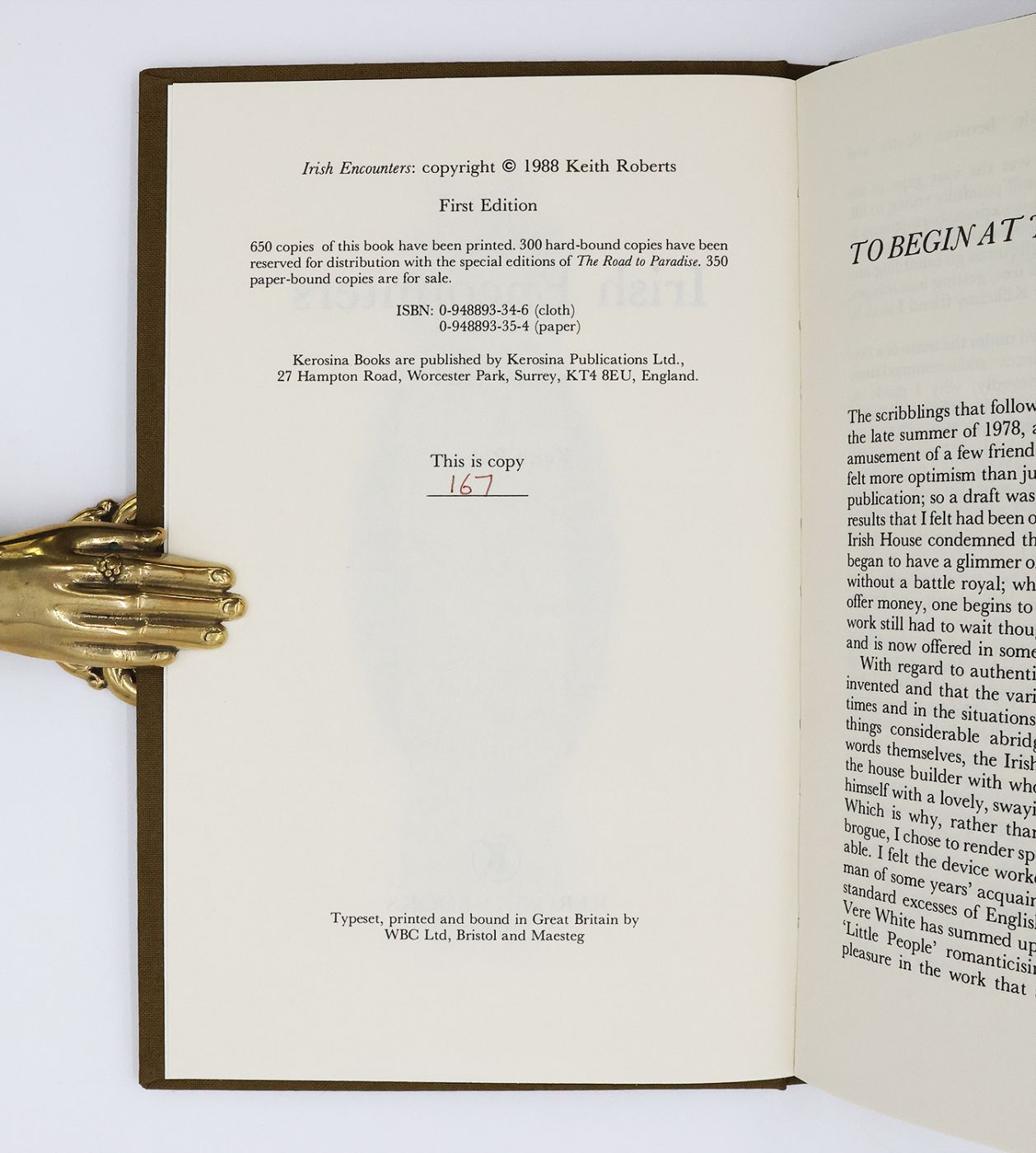 Issued in a limited 'collector's edition' of 250 copies, this example is numbered 167 and signed by Keith Roberts in brown ink on the limitation page. 750 unsigned trade copies and 26 quarter leather bound copies for private distribution were also issued.