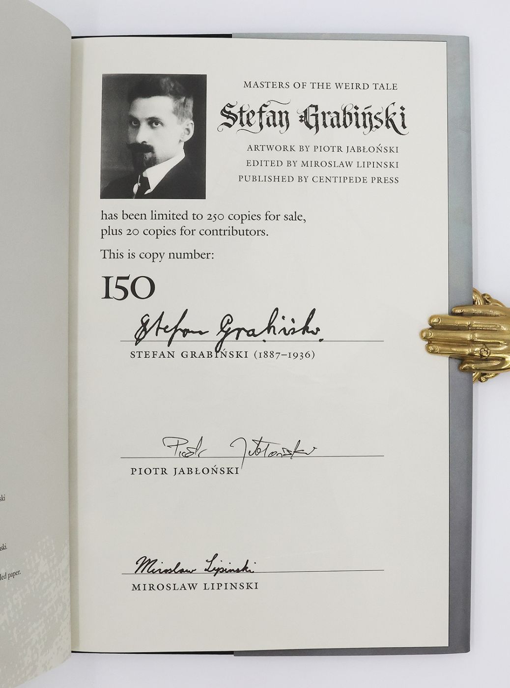 Issued in a limited edition of 250 copies (plus 20 copies for distributors), this example is numbered 150 and signed by the illustrator Piotr Jablonski and translator Miroslaw Lipinski in black ink on the colophon. The colophon also contains the facsimile signature of Stefan Grabinski. A collection of 52 stories written by Stefan Grabinski between 1909 and 1930. Translated into English from the original Polish over the course of 30 years by Miroslaw Lipinski, with 'The Tawny Owl' published here for the first time in English.