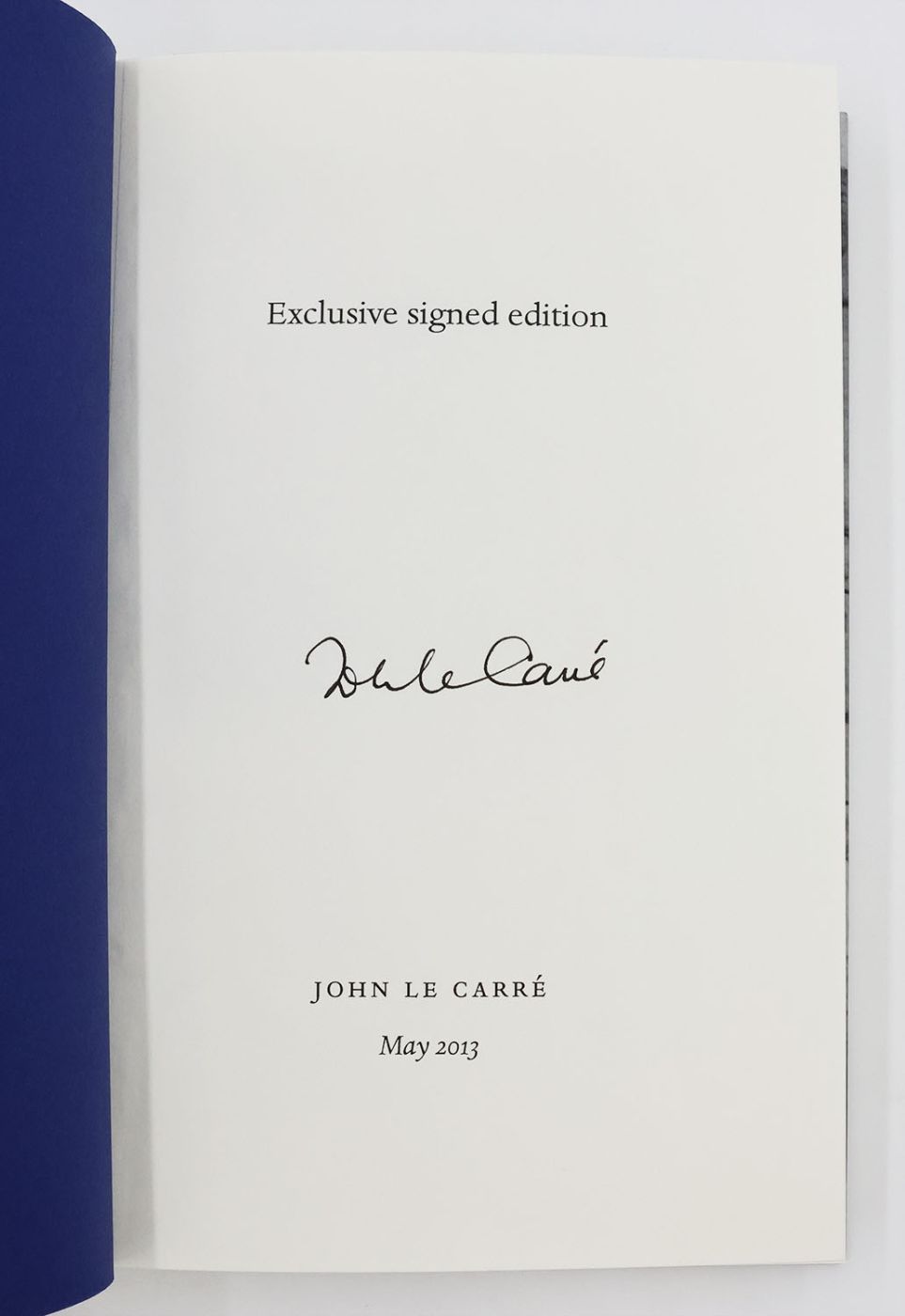 Signed by John Le Carré in black ink on the "Exclusive signed edition" page, the author's introduction is exclusive to this Waterstones issue.