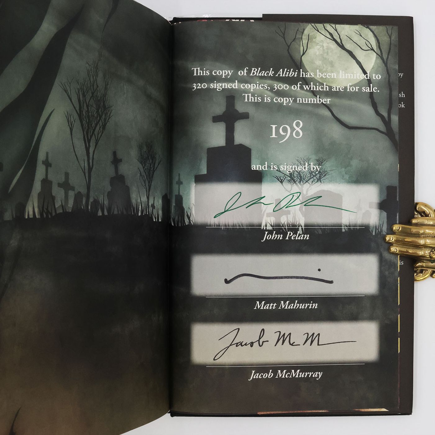 Issued in an edition of 300 copies, this example is numbered 198 and signed by the illustrators Matt Mahurin and Jacob McMurray and the author of the introduction John Pelan in black and green ink, respectively, on the colophon. 'Black Alibi' was first published in 1942 by Simon & Schuster, New York. The novel was the basis for the 1943 horror film 'The Leopard Man', directed by Jacques Tourneur and starring Dennis O'Keefe, Jean Brooks, and Margo. It was later identified as one of the first American films to attempt a realistic portrayal of a serial killer (although the term had not yet been coined). 'Black Alibi' is one of six volumes included in the Cornell Woolrich 'Black' series released by Centipede Press in 2015. Other books in this series are: 'The Bride Wore Black', 'The Black Angel', 'The Black Curtain', 'The Black Path of Fear', and 'Rendezvous in Black'.