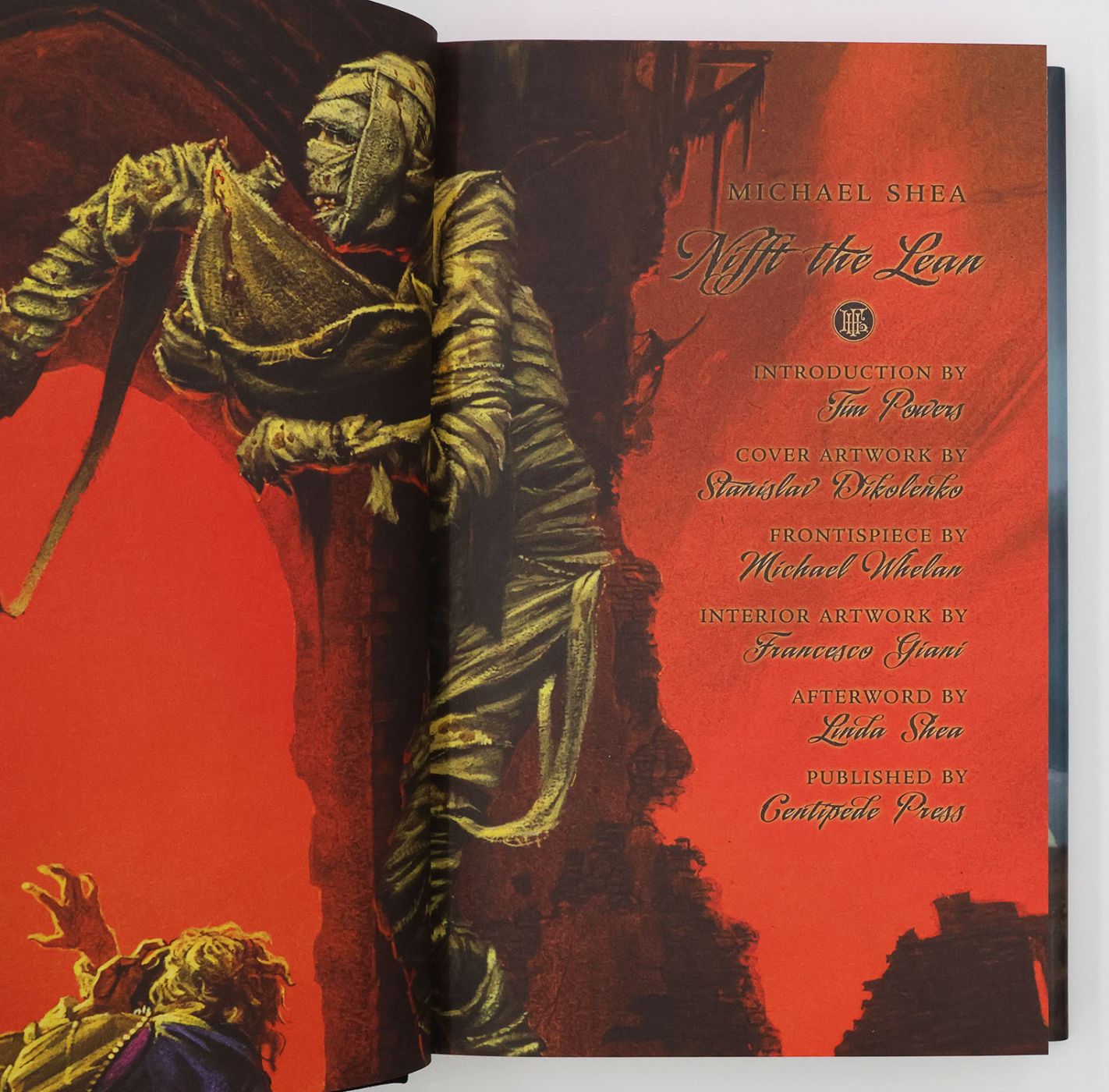 Issued in an edition of 300 copies, from which this example is numbered 130, and signed by the illustrators Stanislav Dikolenko, Michael Whelan, and Francesco Giani, author of the introduction Tim Powers, and author of the afterword Linda Shea (wife of the late author Michael Shea) in silver ink on the colophon. A facsimile of the author Michael Shea's signature in white is also present on the colophon. This expanded edition of 'Nifft the Lean' includes 'Shag Margold's Eulogy' in addition to all four original stories of Nifft the master thief, 'Come Then, Mortal - We Will Seek Her Soul', 'The Pearls of the Vampire Queen', 'The Fishing of the Demon-Sea', and 'The Goddess in Glass'. 'Nifft the Lean' was first published in 1982 by DAW Books (New York), and went on to win the World Fantasy Award in the 'Best Novel' category in 1983.