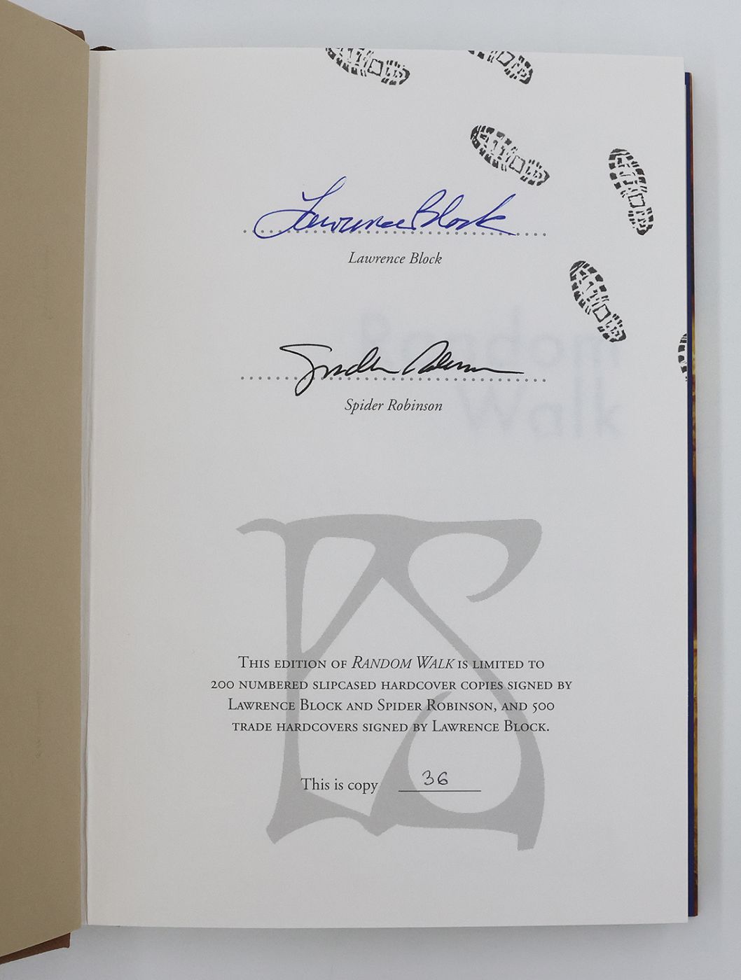 Issued in an edition of 200 copies, from which this example is numbered 36, and signed by the author Lawrence Block and the author of the introduction Spider Robinson in blue and black ink, respectively, on the limitation page.