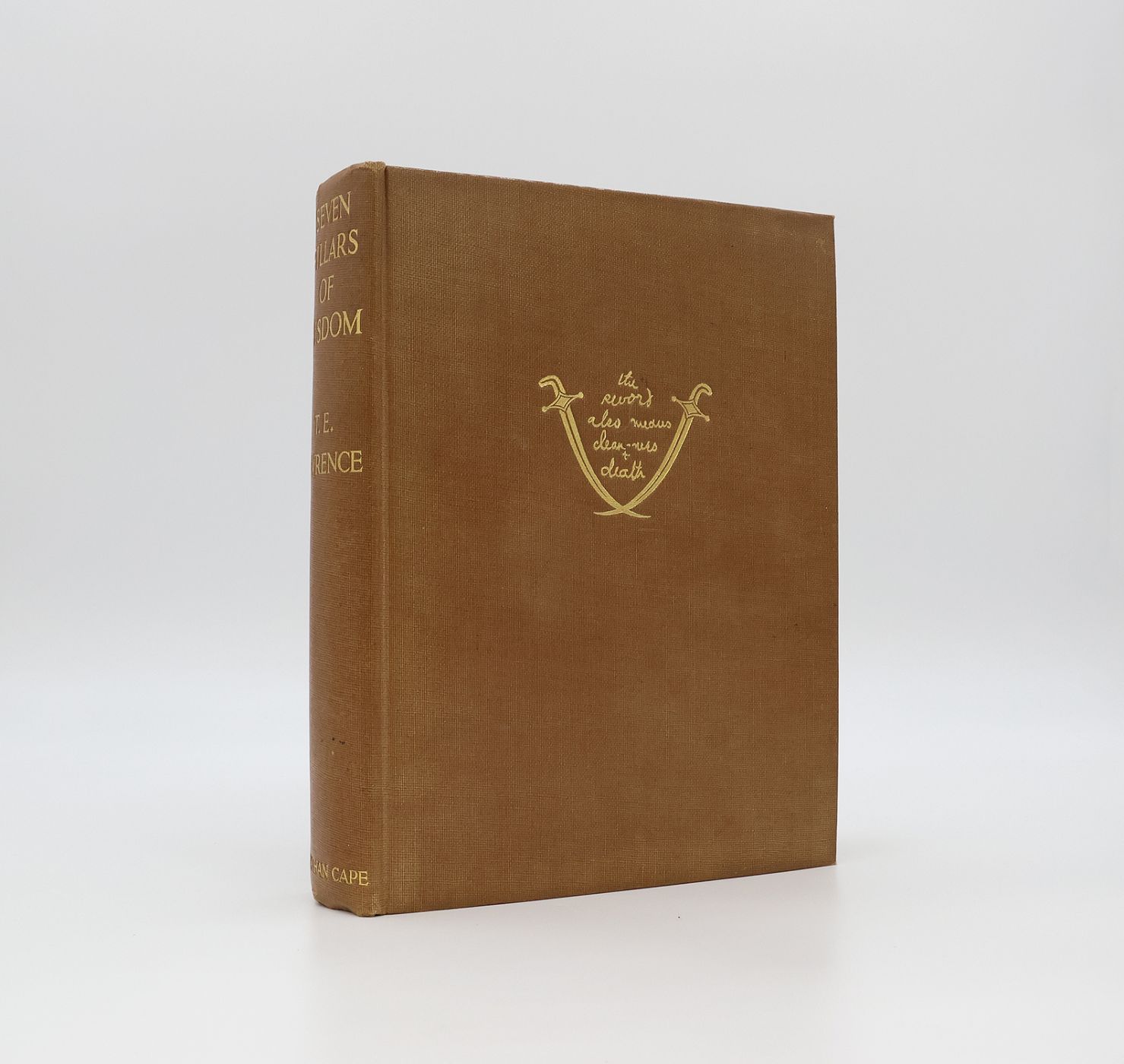 First trade edition, first printing. Publisher's brown cloth boards with gilt titling to the spine and gilt sword illustration to the front panel. Without the dustwrapper. Illustrated with a black and white portrait frontispiece, 53 additional plates, and 4 maps by Eric Kennington, William Rothenstein, Augustus John, William Roberts and others. A Jonathan Cape 'Now and Then' promotional postcard loosely laid in. A near fine copy, the binding square and firm with a little bumping to the spine tips, the cloth with just a couple of light marks, is bright and fresh. The contents are clean throughout and and free from foxing, inscriptions or stamps. An attractive example.