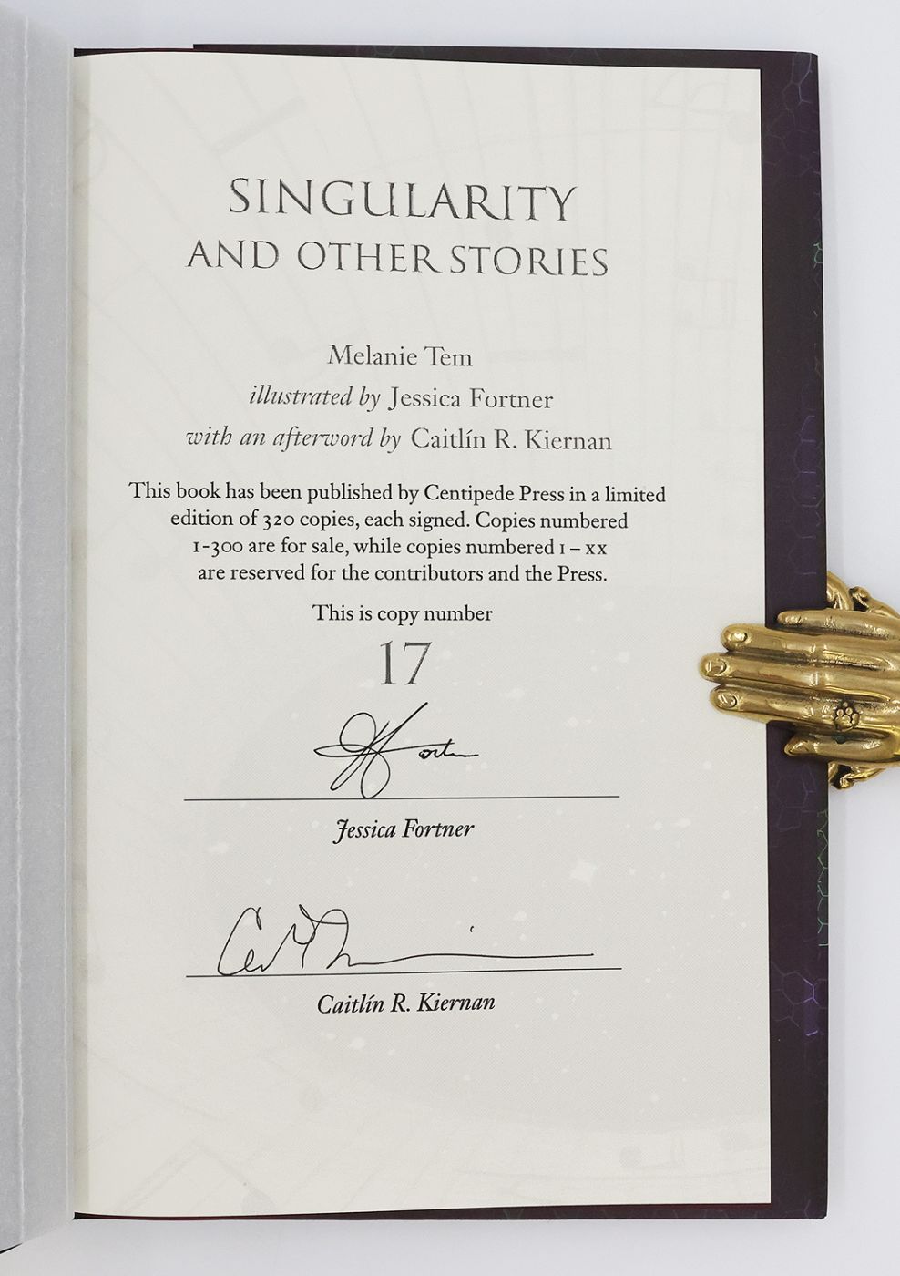 Issued in an edition of 320 copies (of which 300 were for sale), this example is numbered 17 and signed by the illustrator Jessica Fortner and author of the afterword Caitlin R. Kiernan in black ink on the colophon. Collected here are 60 short horror stories, first published between 1978 and 2014, by Melanie Tem who was the recipient of the Bram Stoker Award and World Fantasy Award.