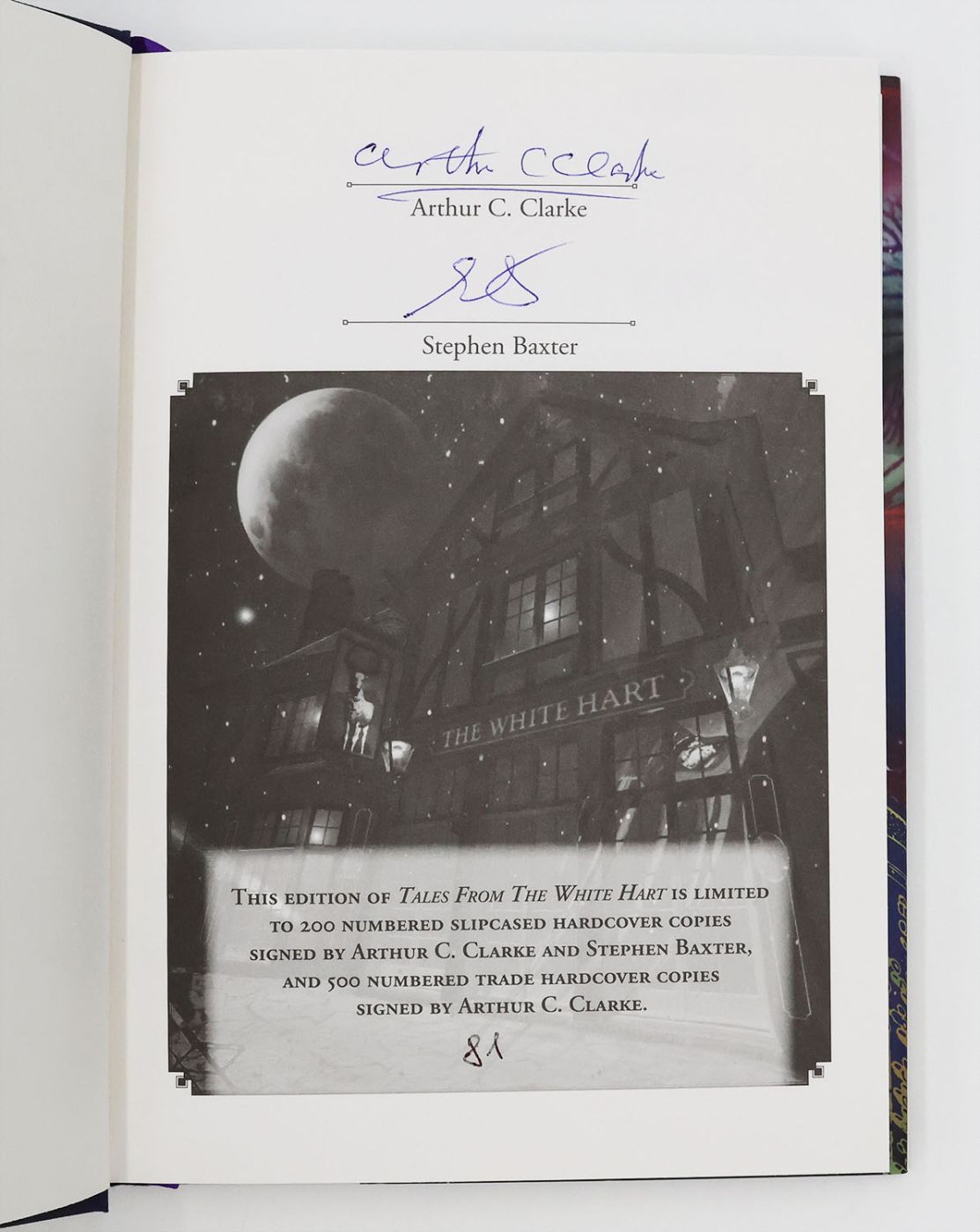 Issued in a limited edition of 200 copies, this example is numbered 81 and signed by Arthur C. Clarke and Stephen Baxter (who provides the introduction) on the limitation page. A short story collection, reissued on the 50th Anniversary of the 1957 Ballantine paperback original, here adding one new story, a collaboration with Stephen Baxter 'Time Gentleman Please' replacing 'Let There Be Light' from the original.