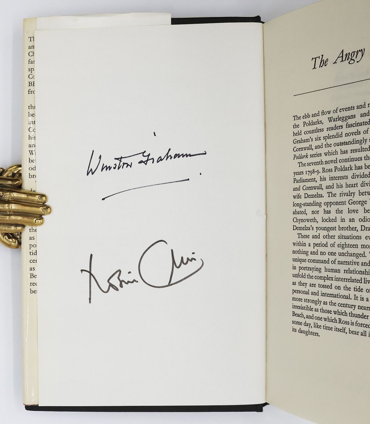 Signed by Winston Graham and Robin Ellis, the actor who played Ross Poldark in the 1970s television adaptation of the Poldark series, in black ink on the reverse of the front free endpaper. The seventh Poldark novel. Graham's Poldark series has inspired two successful BBC television adaptations, the first aired between 1975 and 1977 and starred Robin Ellis and Angharad Rees, the second aired between 2015 and 2019 and starred Aiden Turner and Eleanor Tomlinson.