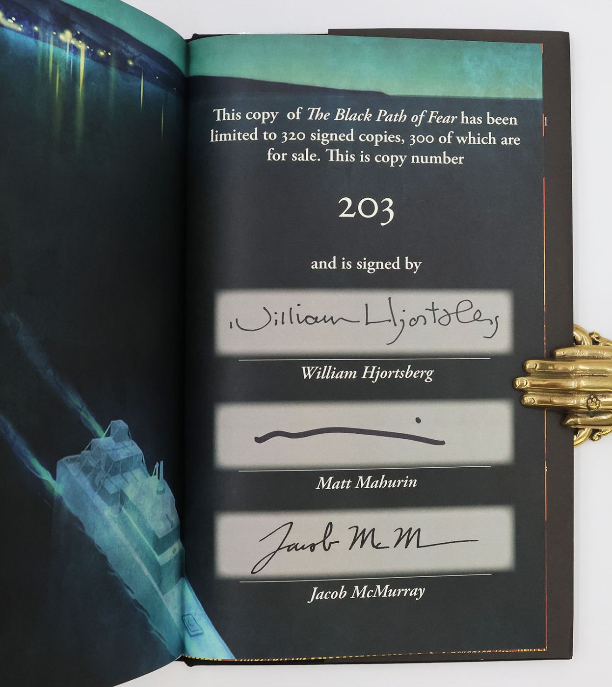 Issued in an edition of 300 copies, this example is numbered 203 and signed by the illustrators Matt Mahurin and Jacob McMurray and by the author of the introduction William Hjortsberg in black ink on the colophon. 'The Black Path of Fear' was first published in 1944 by Doubleday Books, New York, and was the basis for the 1946 film noir 'The Chase', directed by Arthur Ripley and starring Robert Cummings, Steve Cochran, and Michèle Morgan. 'The Black Path of Fear' is one of six volumes included in the Cornell Woolrich 'Black' series released by Centipede Press in 2015. Other books in this series are: 'Black Alibi', 'The Black Angel', 'The Black Curtain', 'The Bride Wore Black', and 'Rendezvous in Black'.