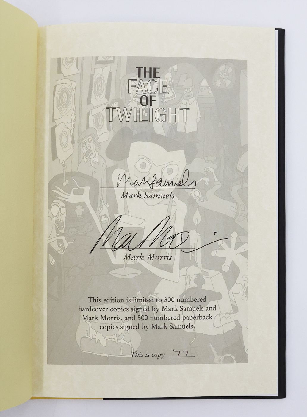 Issued in an edition of 300 copies, from which this example is numbered 77, and signed by the author Mark Samuels and the author of the introduction Mark Morris in black ink on the limitation page. Nominated for the 2007 British Fantasy Award and August Derleth Award.