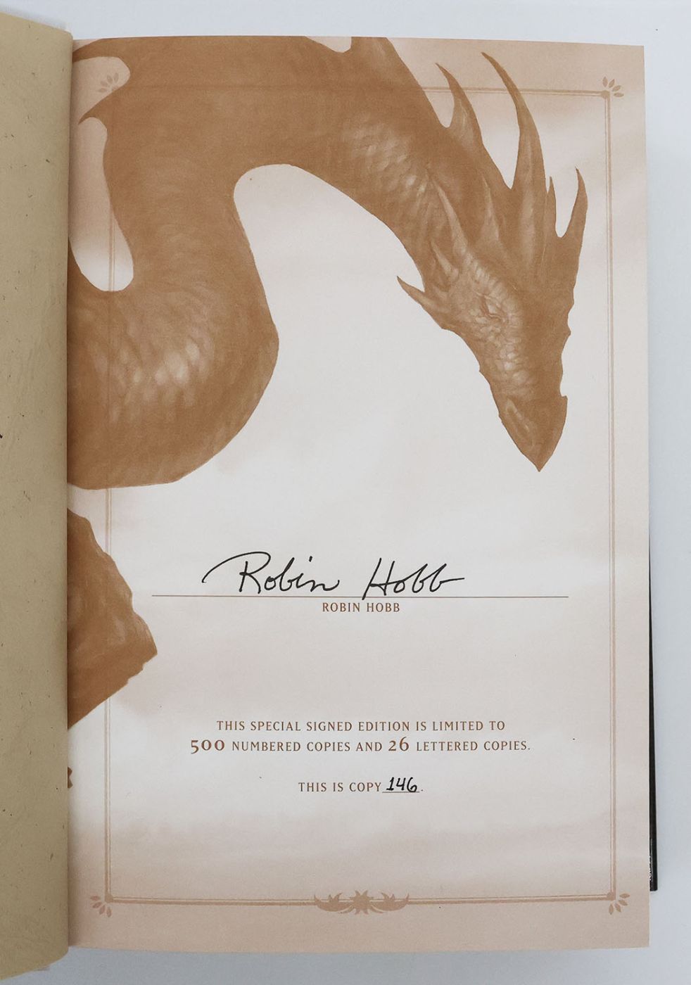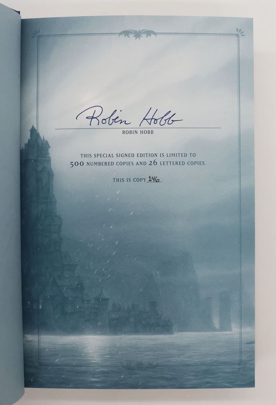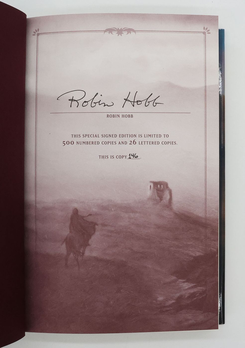 Issued in an edition of 500 copies, from which all three volumes are numbered 146, and signed by Robin Hobb in black and blue ink on the limitation page. This thrilling saga follows assassin FitzChivalry 'Fitz' Farseer as he seeks to restore stability to the kingdom of the Six Duchies, while reckoning with his burgeoning magic abilities. 'Assassin's Apprentice' was nominated for the 1997 British Fantasy Award for 'Best Novel' and was a finalist for the Compton Crook Stephen Tall Memorial Award, all three books received consecutive Locus Award nominations between 1996-8.