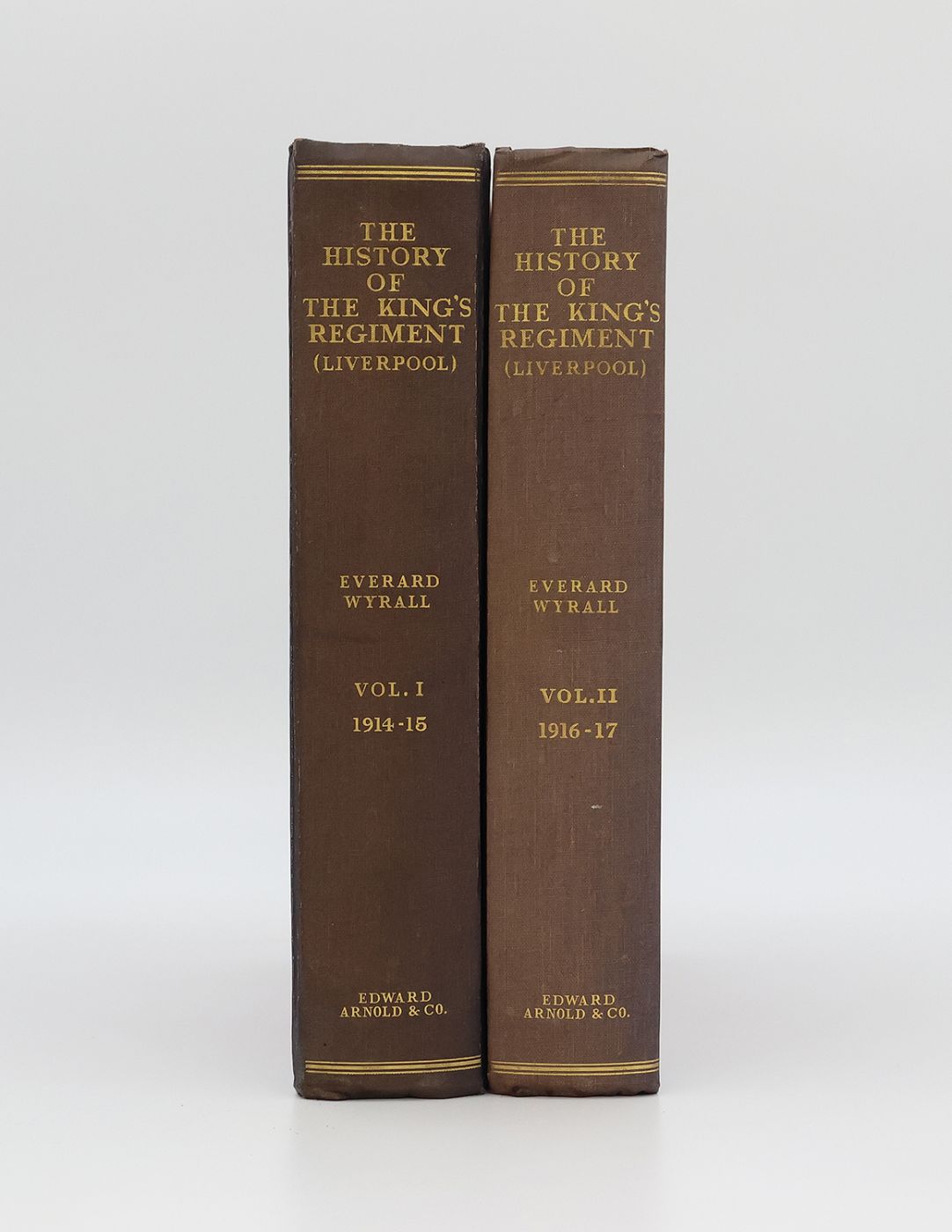First edition, first printing. Complete in two volumes. Publisher's original quarter dark blue and burgundy cloth, with titles and borders in gilt to the spine, and with royal insignia in gilt to the upper board. Illustrated across both volumes with eighteen black and white plates and sixteen fold-out black and white maps pasted in. Errata slip pasted in to the contents page in Volume II. A very good set, the binding square and firm, the gilt insignia fresh, faded to the spine, and mildly rubbed and bumped to the extremities. Moderate foxing to the fore-edge and a touch of spotting to the bottom edge of the lightly toned text block. Volume I with the ownership signature of Standish Henry Harrison, in black ink on the front free endpaper, the contents are otherwise clean throughout. Brigadier-General Standish Henry Harrison (1853–1953) was a distinguished Irish-born British Army officer. He served in the King's Liverpool Regiment and Royal Munster Fusiliers, commanding battalions and, during WWI, a brigade. He held major commands in Ireland before retiring to County Cork.