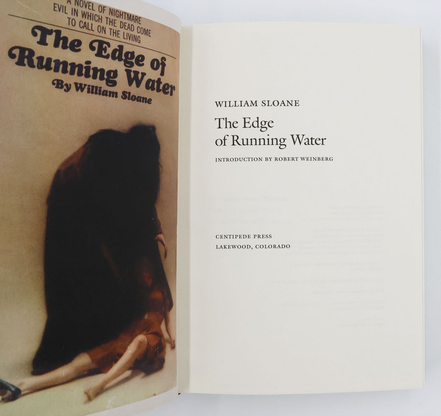 Issued in a limited edition of 300 copies. Classics of horror fiction, 'To Walk the Night' was first published in 1937 and 'The Edge of Running Water' was first published in 1939, both by by Farrar and Rinehart, New York. In addition to the two novels this Centipede Press edition includes several essays by Sloane.