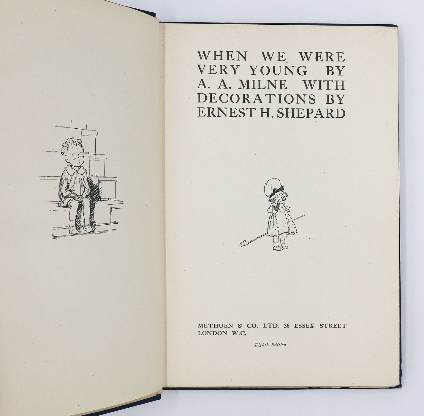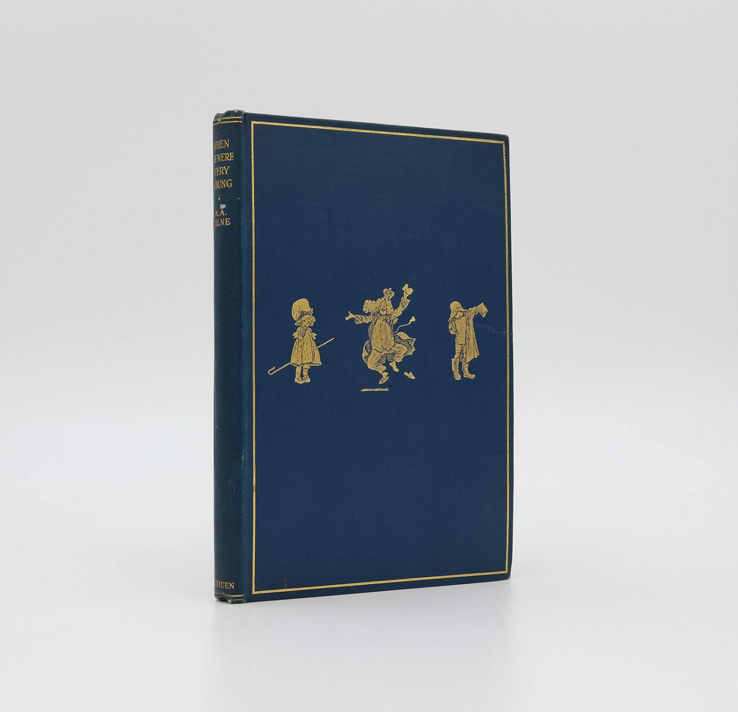 Eighth printing of the 1924 first edition. Publisher's original blue cloth with gilt titles to the spine and a gilt illustration to the upper board, without dustwrapper. Top edge gilt. Illustrated throughout in black and white by E. H. Shepard. A very good copy, the binding square and firm with a little bumping at the spine tips, the cloth with a touch of fraying and a couple of small marks is bright and fresh. The contents, with a small ink name to the upper edge of the front pastedown and mild offsetting to the endpapers, are otherwise clean throughout.