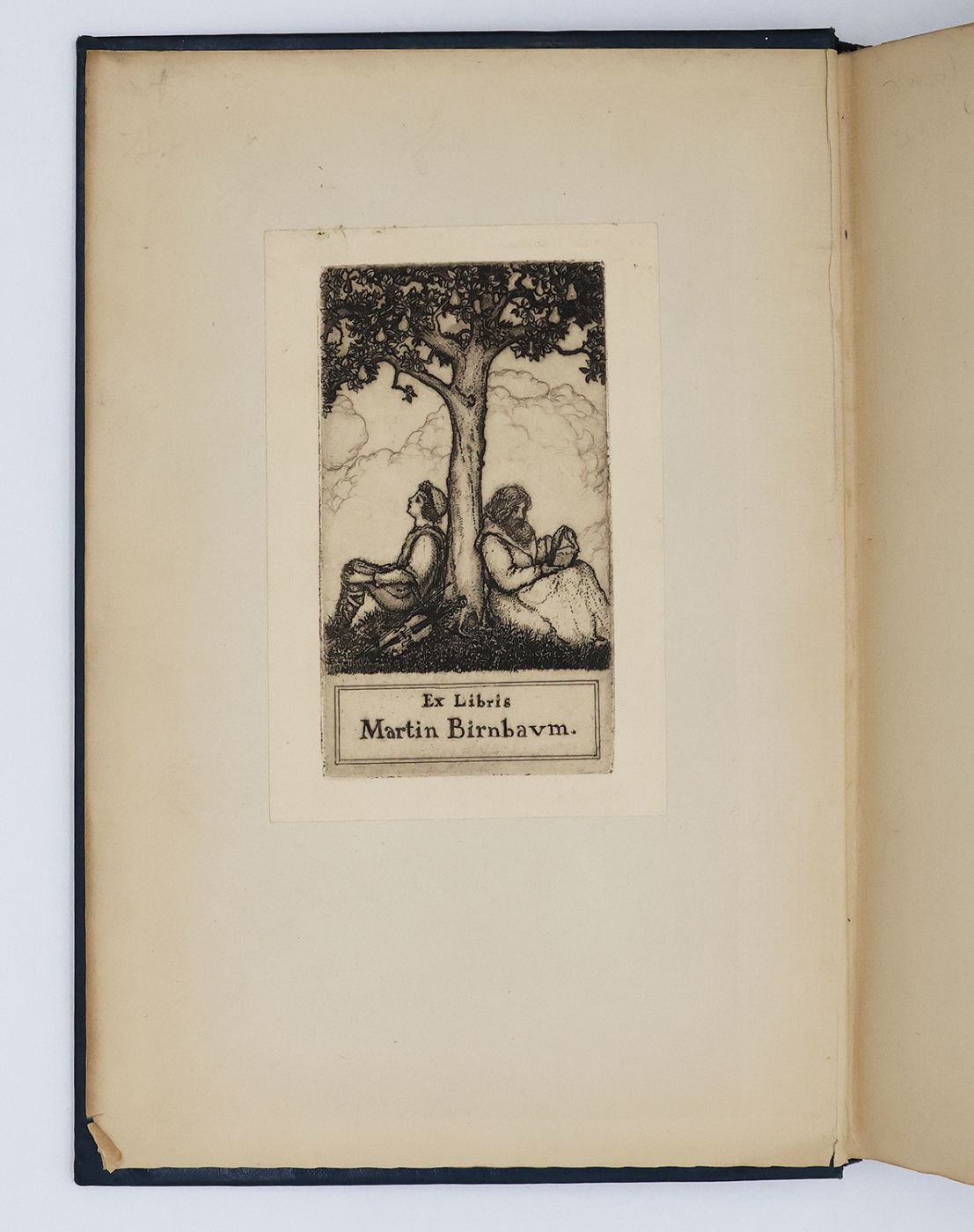 First edition. Publisher's original blue cloth with web illustration in light blue to the upper board, titles in bronze to the upper board and spine. Frontispiece illustration by Aubrey Beardsley. A very good copy indeed, the binding square and firm with a little bumping and mild rubbing at the spine tips, the bronze lettering on the spine somewhat dulled. The contents, partially uncut, with the bookplate of the Martin Birnbaum (noted Wildean, New York art aficionado and author of 'Wilde: Fragments and Memories' (1914)) to the front pastedown, are otherwise clean throughout.