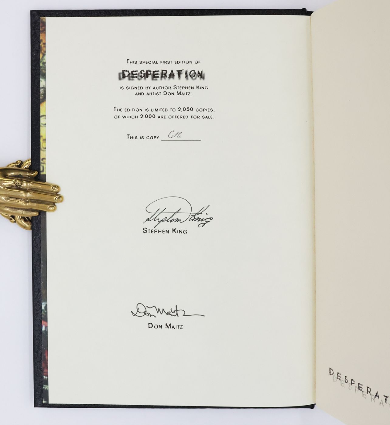 Issued in a limited edition of 2,050 copies, of which 2000 were for sale, this example is numbered 616 and signed by Stephen King and Don Maitz on the limitation page.