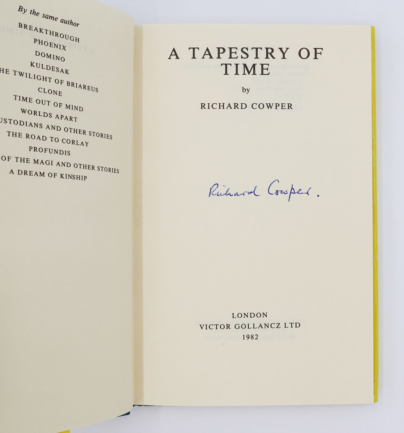 Signed by Richard Cowper in blue ink on the title page. Book three in Cowper's 'The White Bird of Kinship' future fantasy trilogy, set a thousand years after the the melting of the polar ice caps has caused catastrophic flooding that has broken Britain into seven 'kingdom' islands and levelled European culture to a pre-industrial state. The first book in the series, 'The Road to Corlay', was nominated for the British Fantasy, Nebula and Balrog awards.