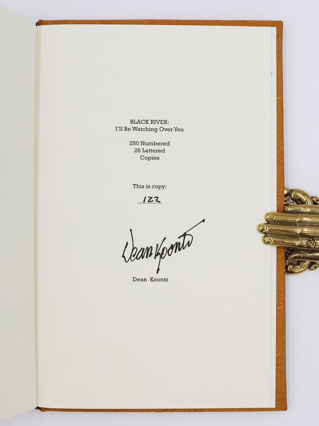 Issued in an edition of 250 hand-bound copies, from which this example is numbered 122, and signed by the author Dean R. Koontz in black ink on the colophon. An attractive copy of this 1999 science-fiction mystery novella by horror grandmaster Dean Koontz, released as part of a series of republications of Koontz' short fiction.. A compelling tale of an artificial intelligence gone rogue, the novella was the basis for the 2001 American television film of the same name directed by Jeff Bleckner, starring Jay Mohr, Lisa Edelstein, and Ann Cusack.