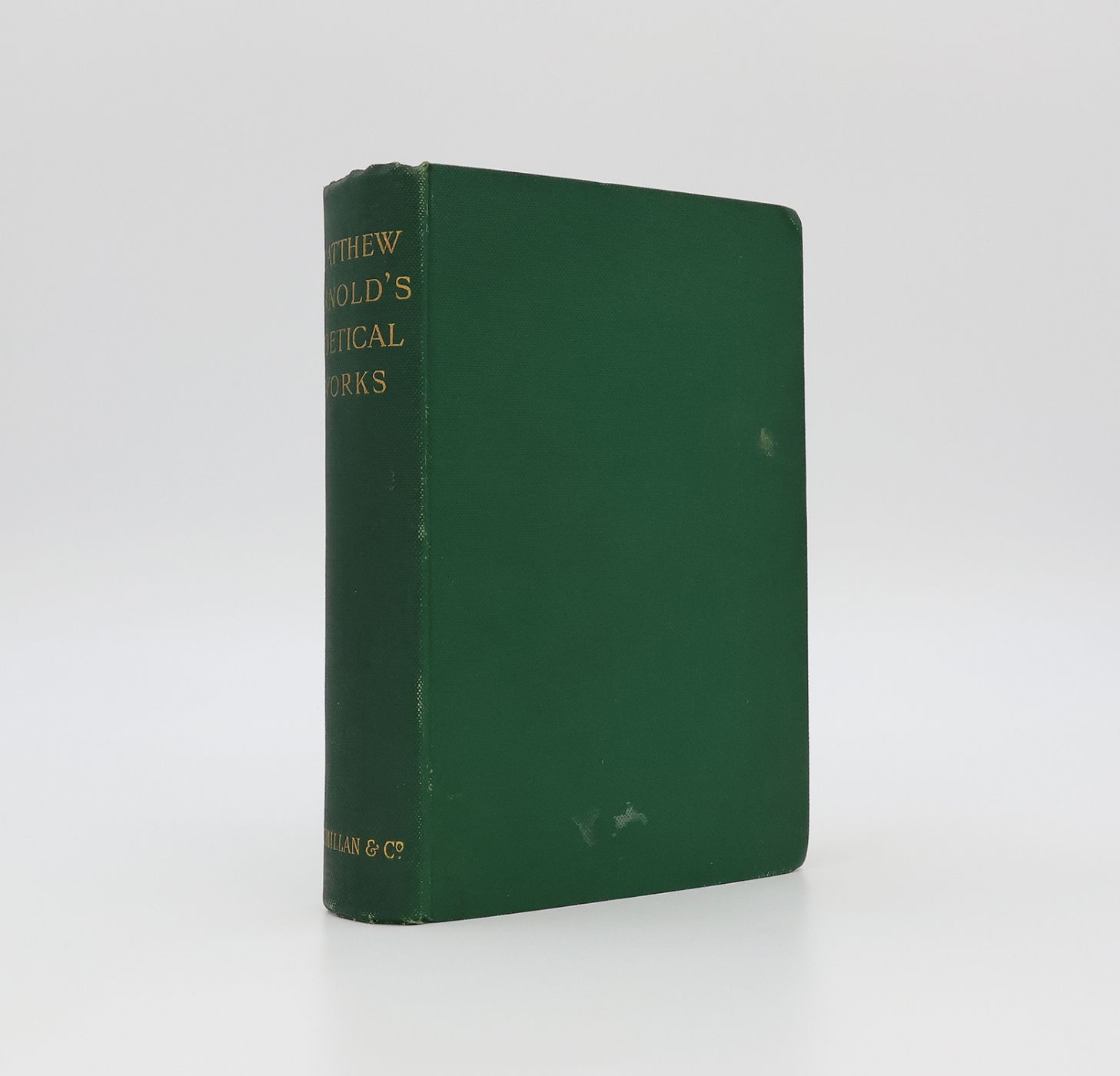Philip Larkin's personal copy of the collected poems of Matthew Arnold. A reprint of the September 1890 'first complete edition'. Publisher's original green cloth with gilt titles to the spine. Portrait frontispiece. A very good or better copy, the binding square and firm, the cloth and gilt bright and with a few small marks. The contents, with Philip Larkin's tipped in University of Hull 'private collection' bookplate to the front endpaper (the endpaper clipped at the upper corner), a small paper Dublin bookseller's label to the front and rear pastedowns, some pencilled notes to the rear pastedown with corresponding pencil marks to the margins of the poems to which they refer, and some spotting to the endpapers, are otherwise clean throughout.