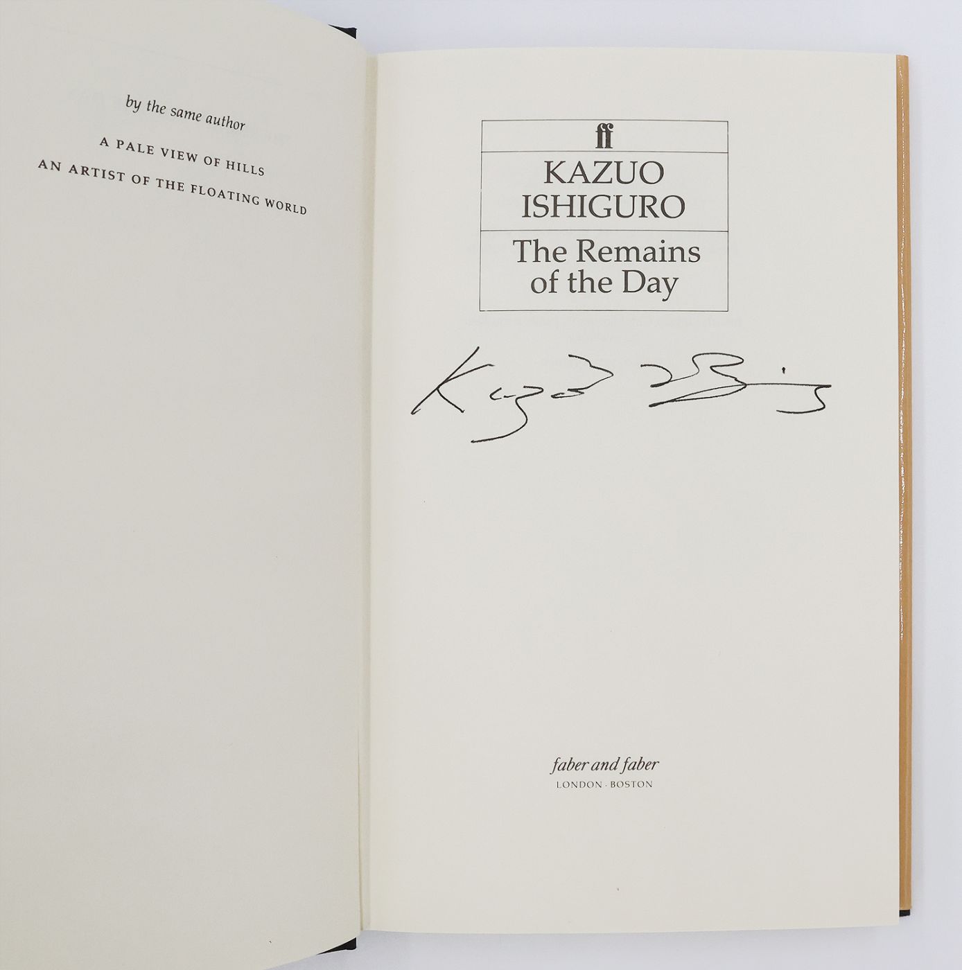 Signed by Kazuo Ishiguro in black ink on the title page. An excellent example of Ishiguro's 1989 Booker Prize winning novel. The basis of the 1993 Academy Award nominated, James Ivory directed film of the same name, starring Anthony Hopkins and Emma Thompson.